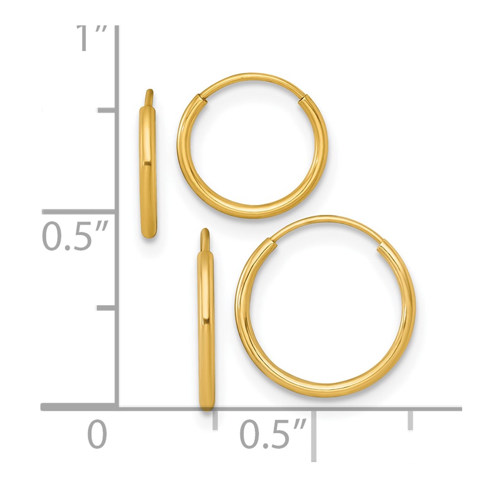 14k Polished Set of Two Pair 1.00x12mm and 1.00x10mm Endless Hoop Earrings