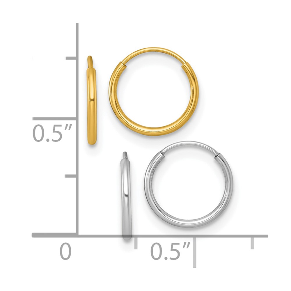 14k Two-tone Set of Two Pair 1.00x10mm Endless Hoop Earrings