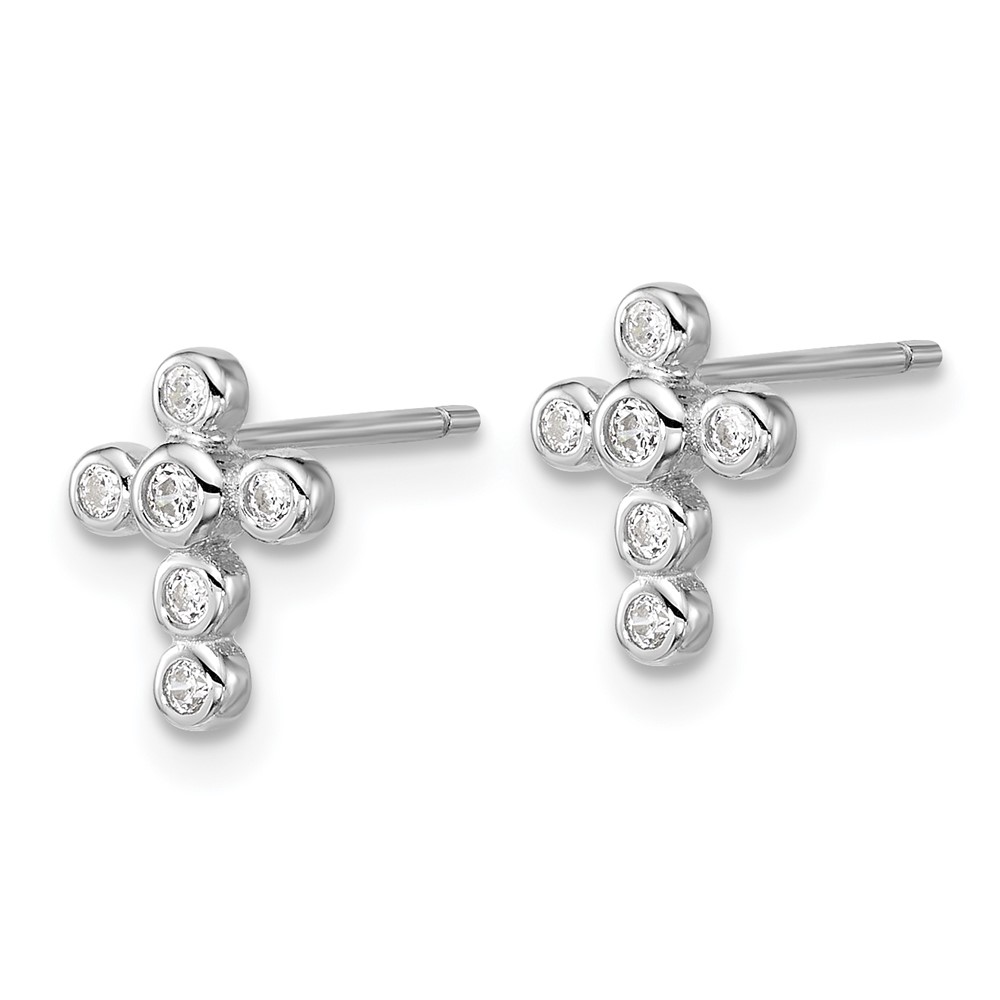 Sterling Silver Rhodium-plated Polished CZ Cross Post Earrings and Pendant Set