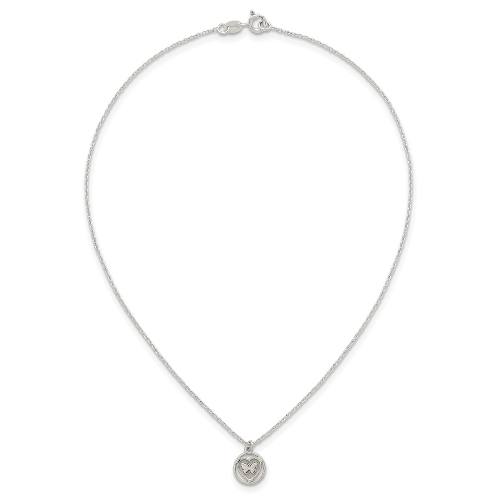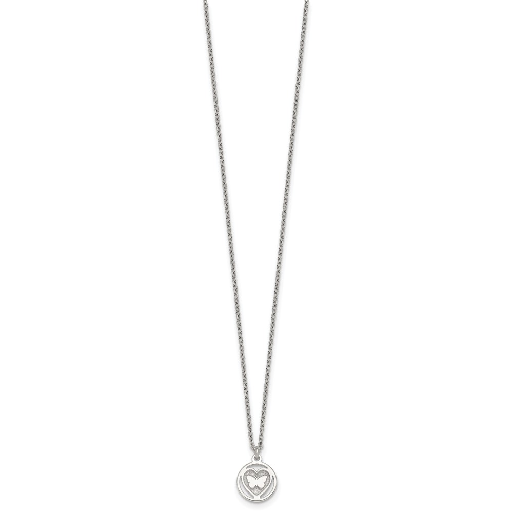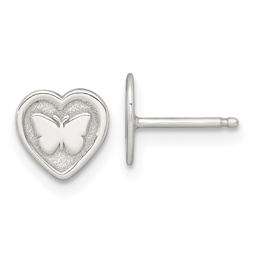 Sterling Silver Polished and Textured Butterfly in Heart Childrens 14 inch Necklace and Post Earrings Set