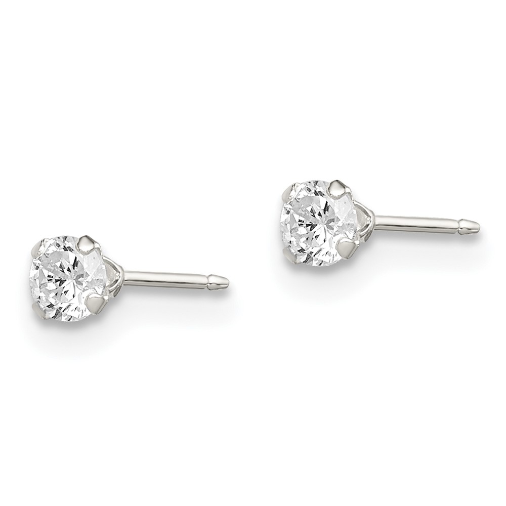 Sterling Silver Polished Rhodium-plated CZ 18in Necklace/Post Earrings Set