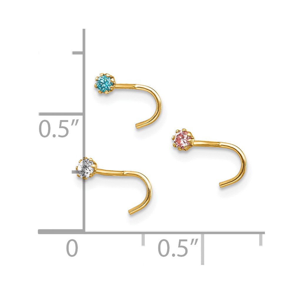 10k Set Of 3 CZ Nose Studs