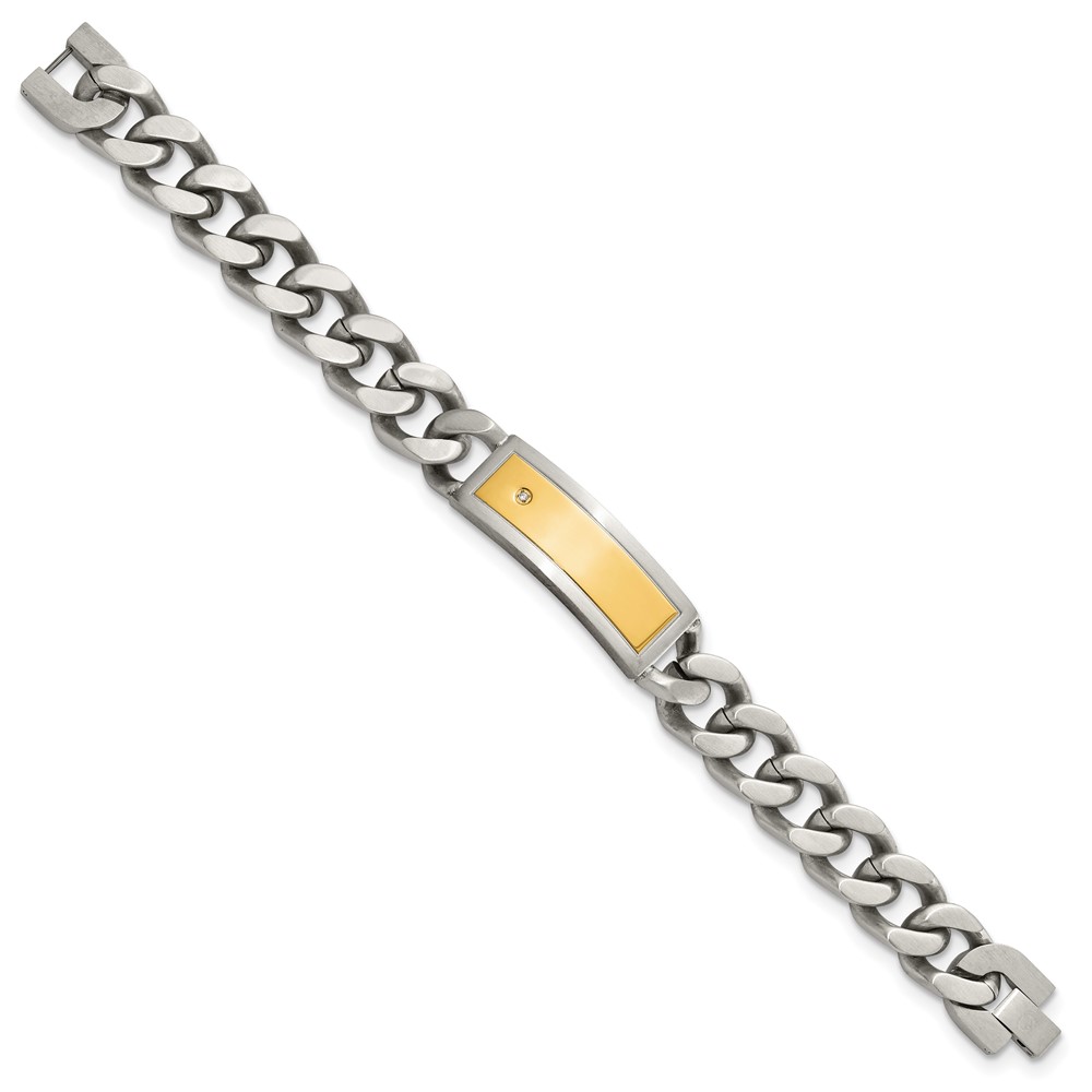 Chisel Stainless Steel Polished and Matte Yellow IP-plated with CZ 24 inchNecklace and 8.5 inch Bracelet Set