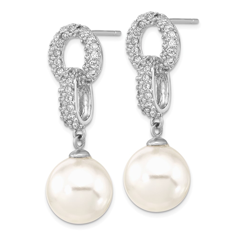 Majestik Sterling Silver Rhodium-plated 10-11mm White Imitation Shell Pearl and CZ Earrings and Spring Ring Clasp 17 inch Necklace Set