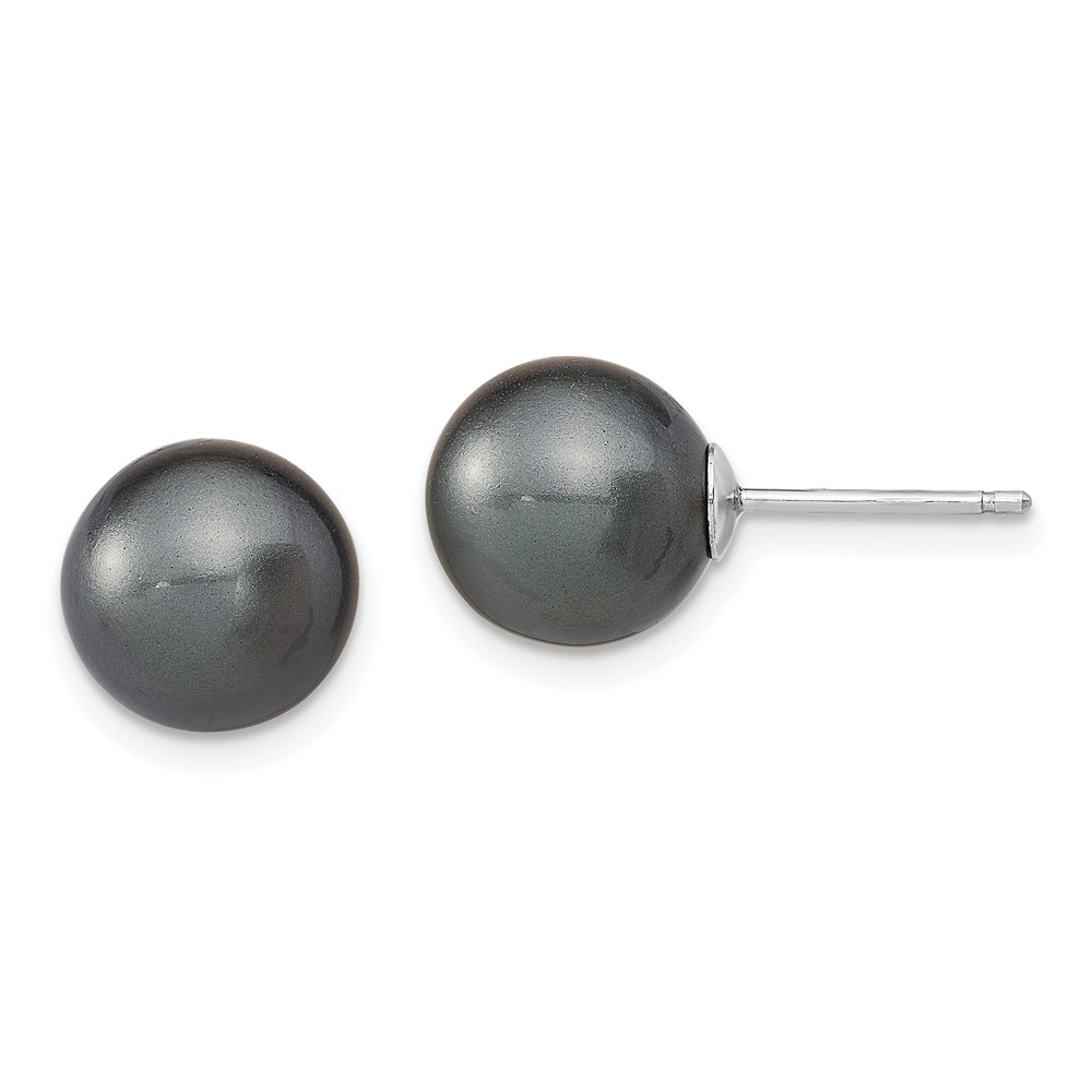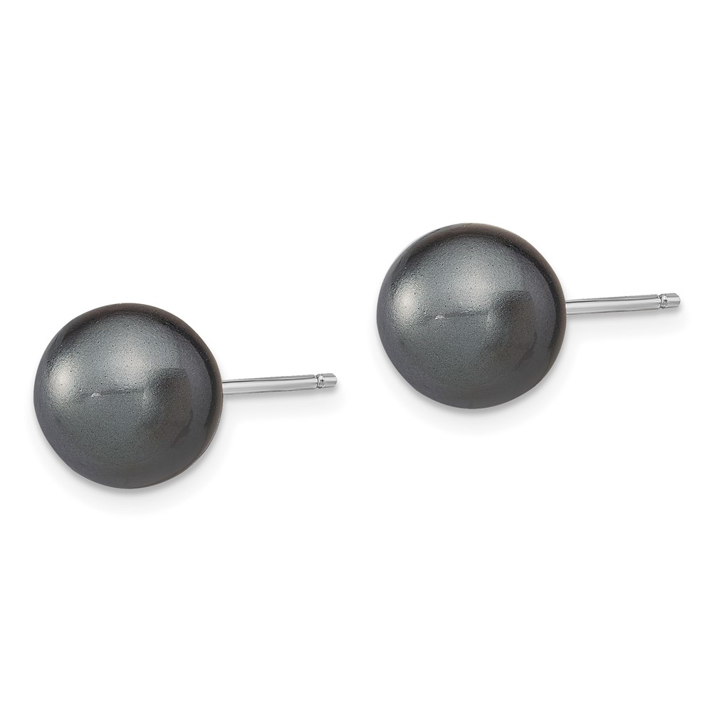 "Sterling Silver Rhodium-plated 10-11mm Black, White and Pink Round Imitation Shell Pearl Set of 3 Post Earrings"