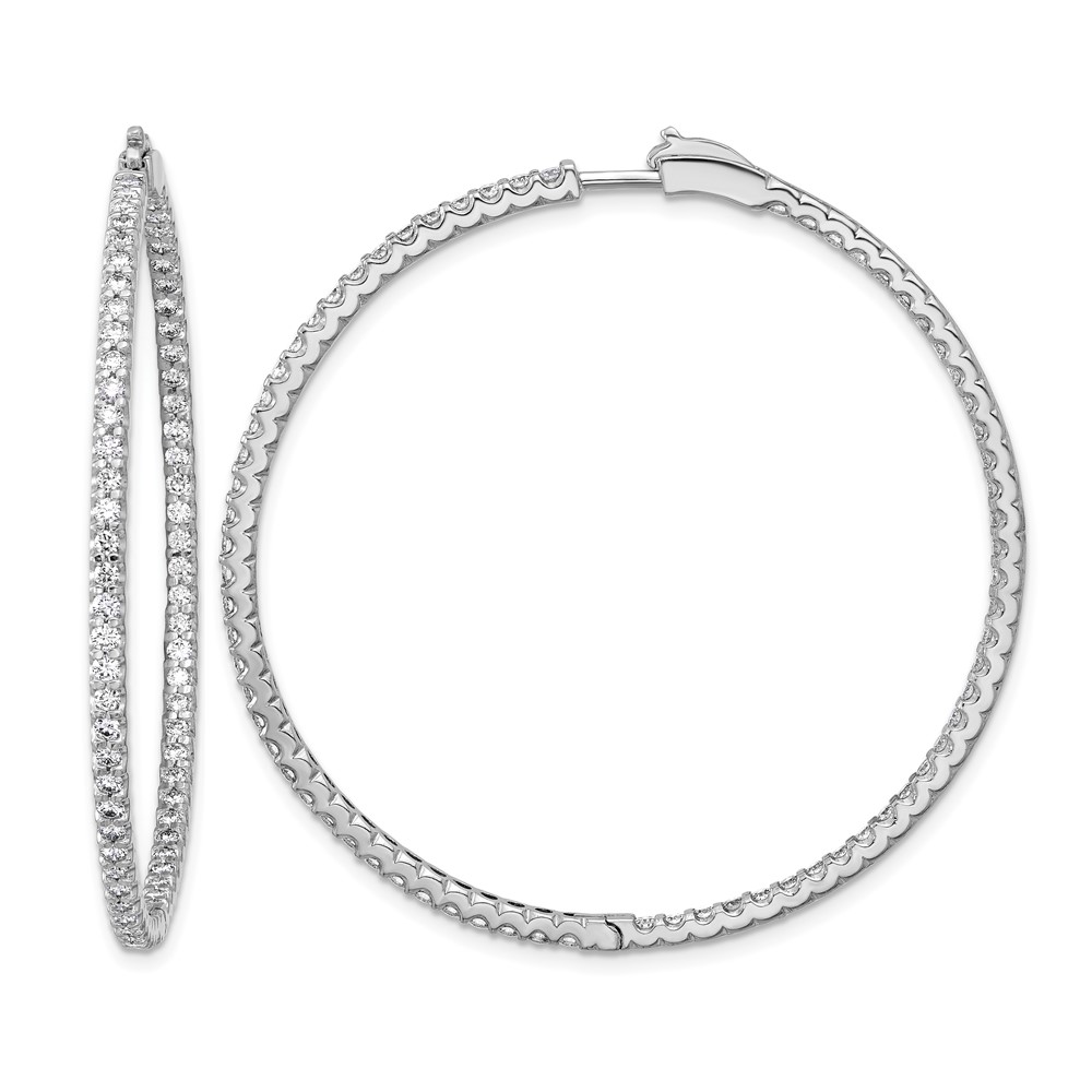 Herco 18K White Gold Rhodium-plated Polished 2.3 Carat Diamond In and Out Hinged Round Hoop Earrings