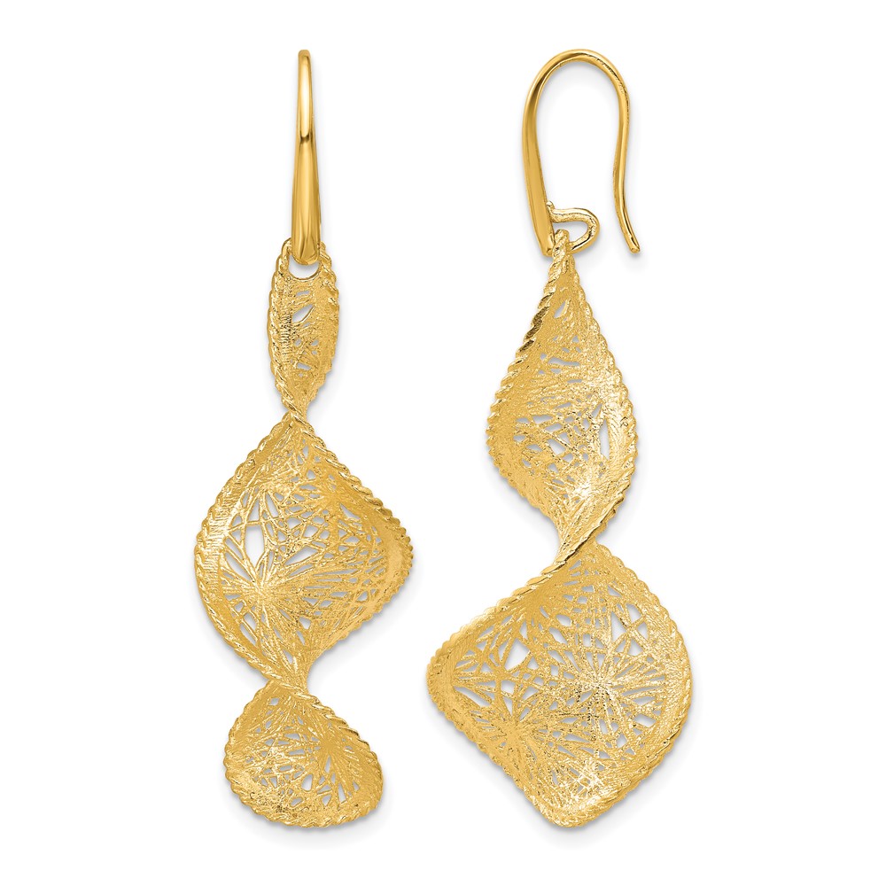 Herco 18K Polished Brushed and Textured Fancy Swirl Shephard Hook Dangle Earrings