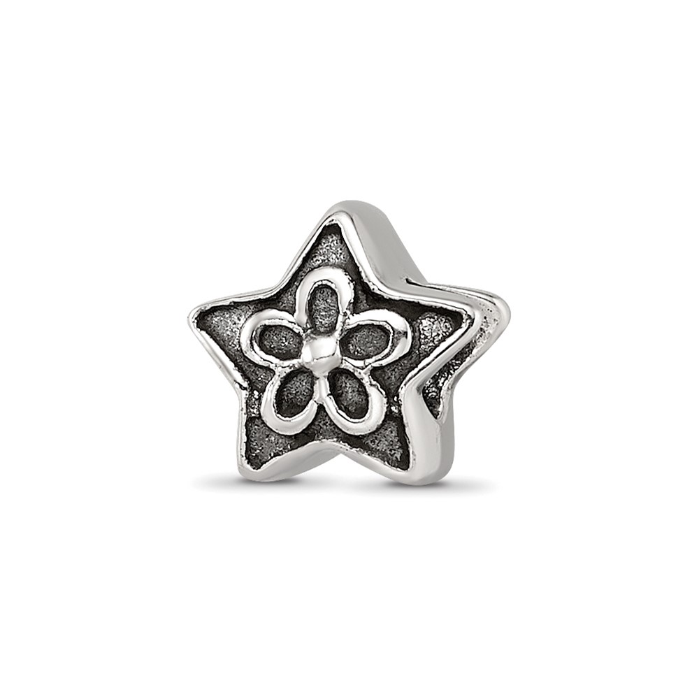 Sterling Silver Reflections Antiqued Star with Flower Kids Bead