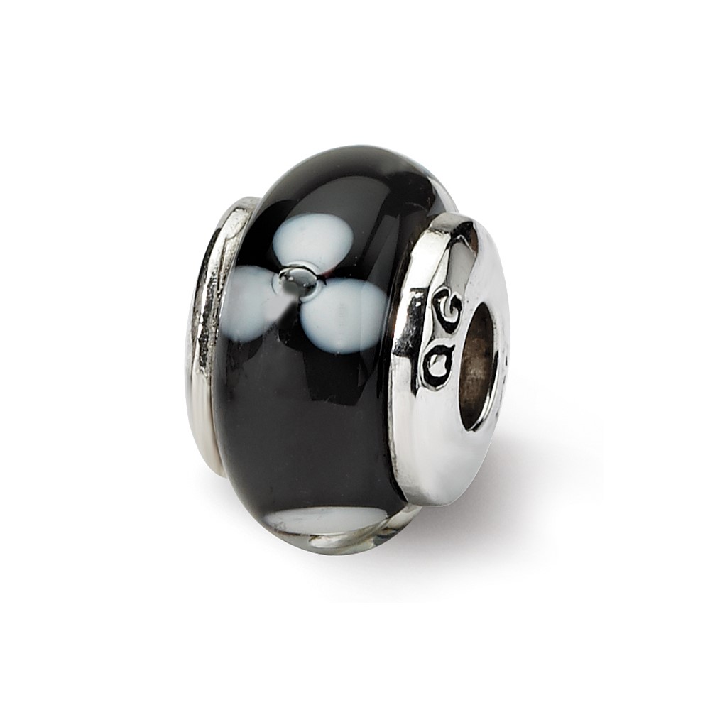 Sterling Silver Reflections Kids Black Hand-blown Glass Bead