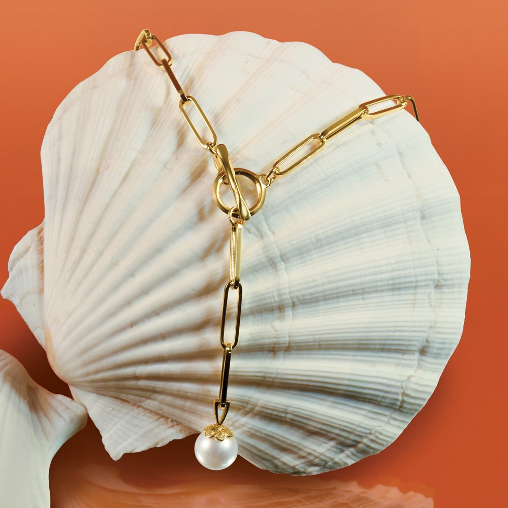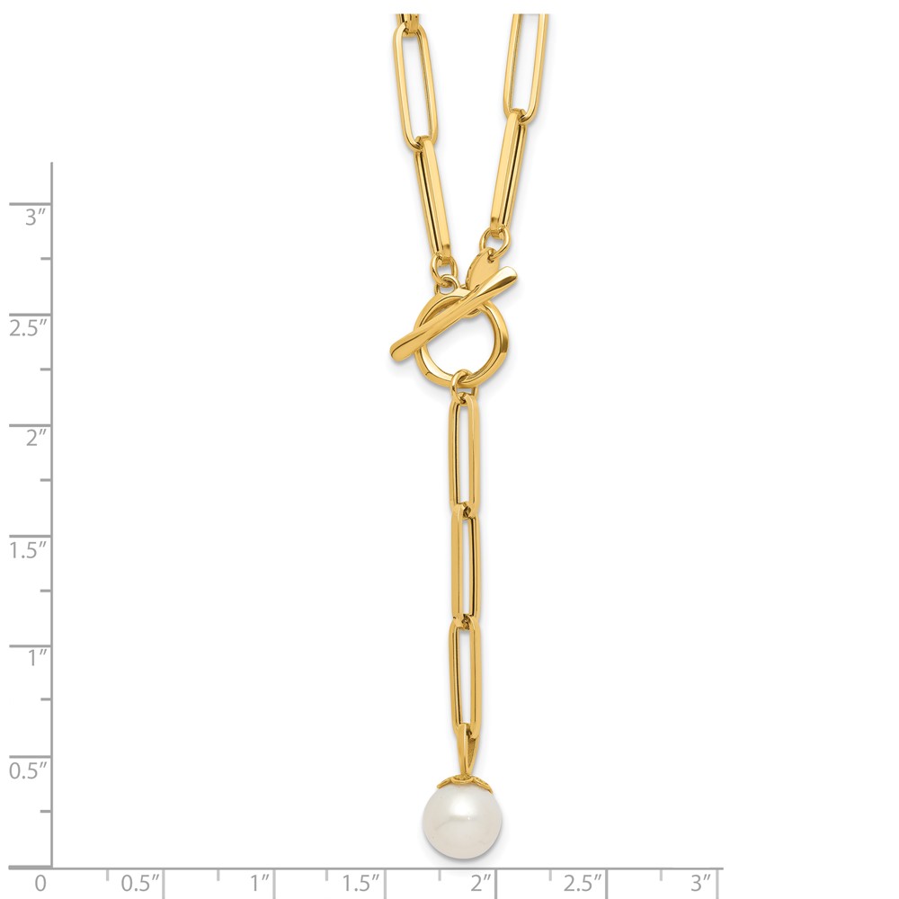 Leslie's 14K Polished Freshwater Cultured Pearl Fancy Link Toggle Necklace