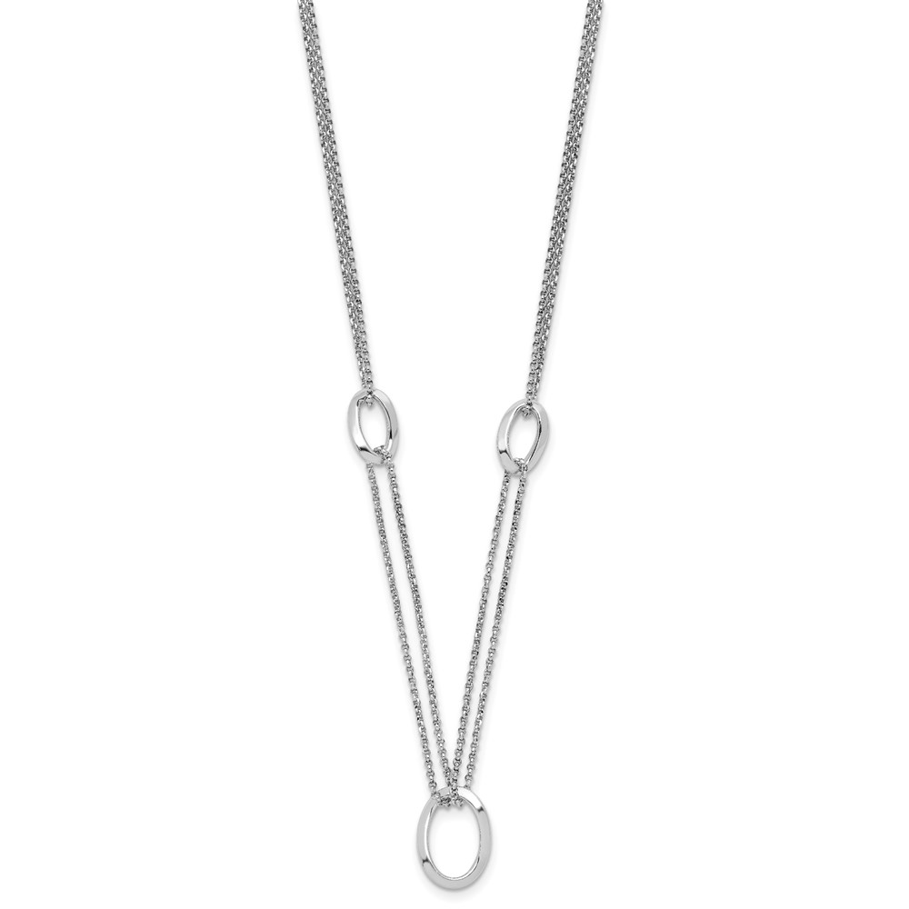 Sterling Silver Rh-plated 18in w/2in ext Fancy 2-Strand Ovals Necklace