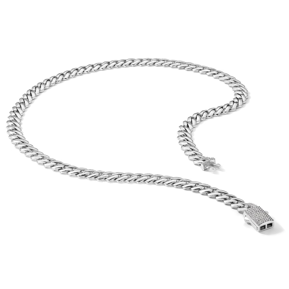 Sterling Silver Rhodium-plated 9mm Monaco Link CZ Clasp 20in Necklace