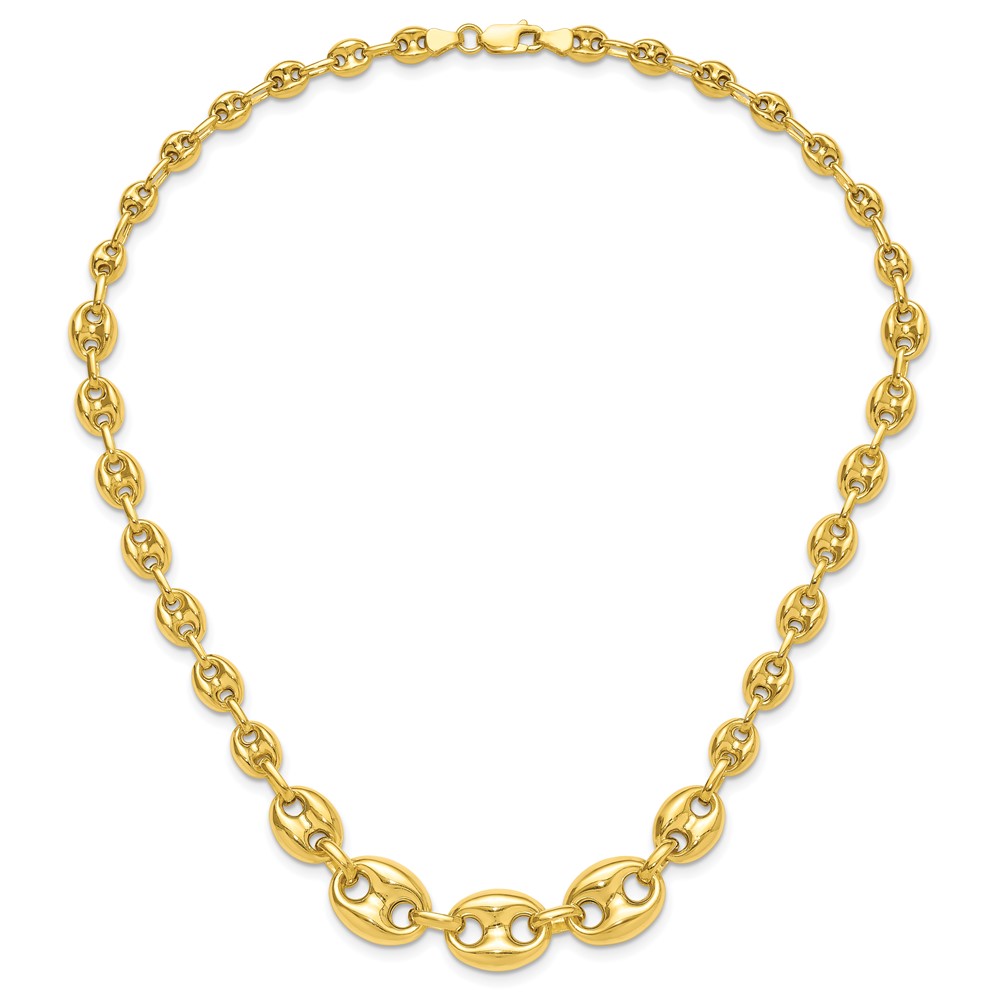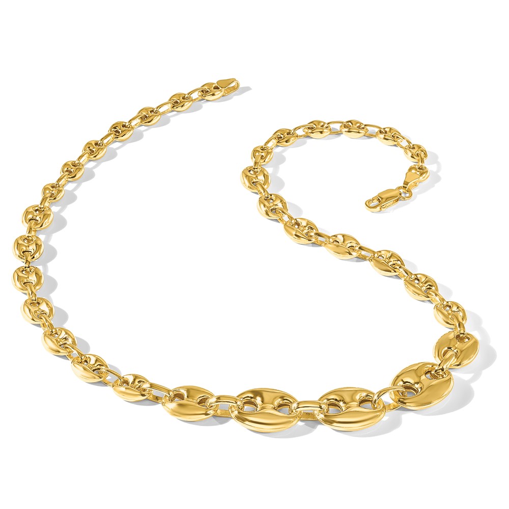 Sterling Silver Gold-tone Hollow Graduated Marina Link 17in Necklace