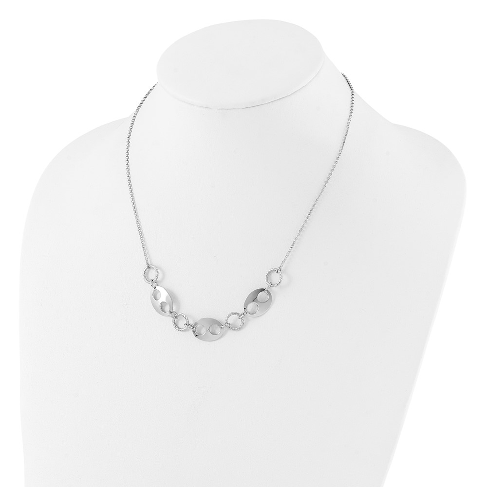 Sterling Silver Rhodium-plated D/C Link w/2 in ext. Necklace