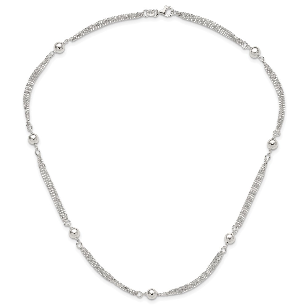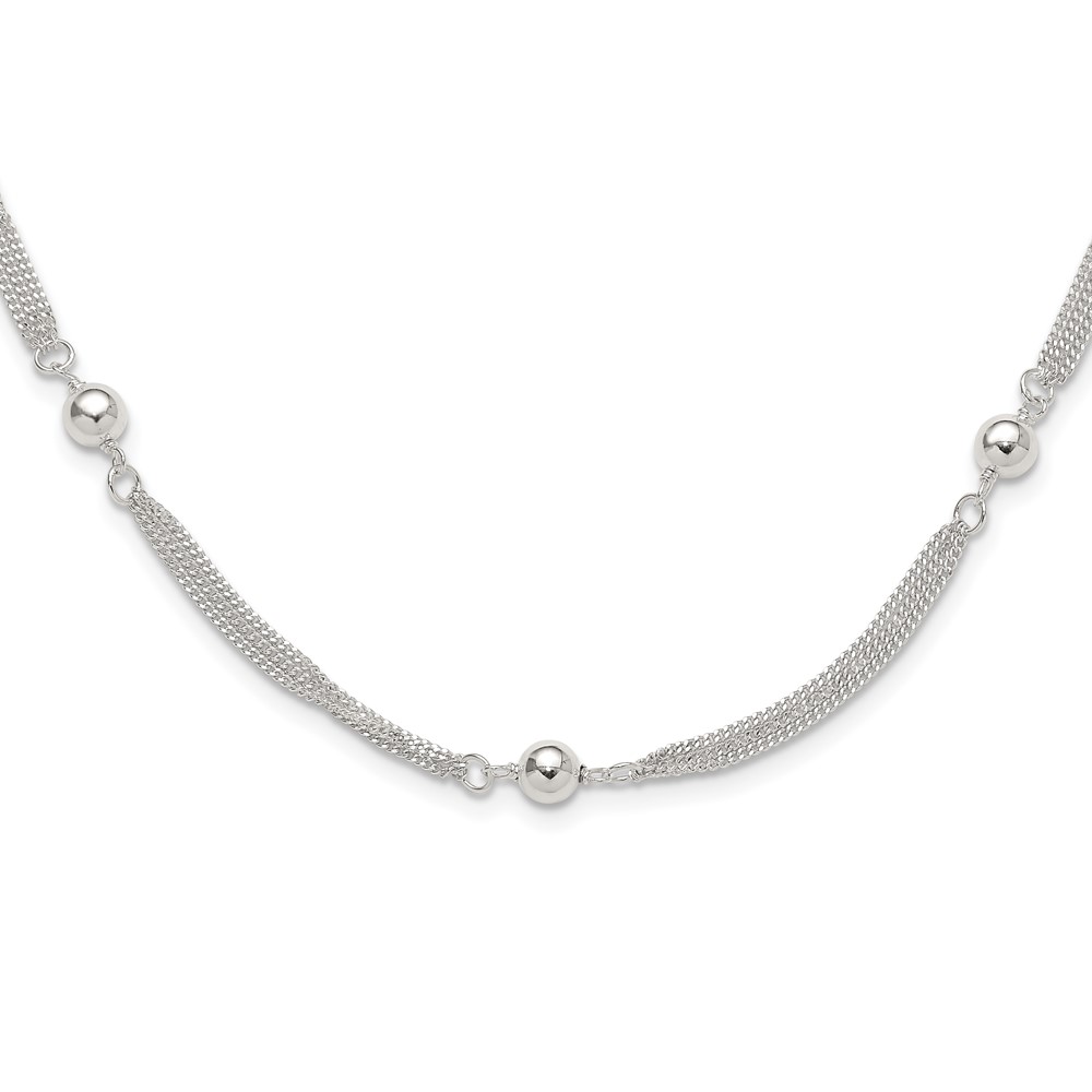 Sterling Silver Polished Multi-strand Beaded 18in Necklace