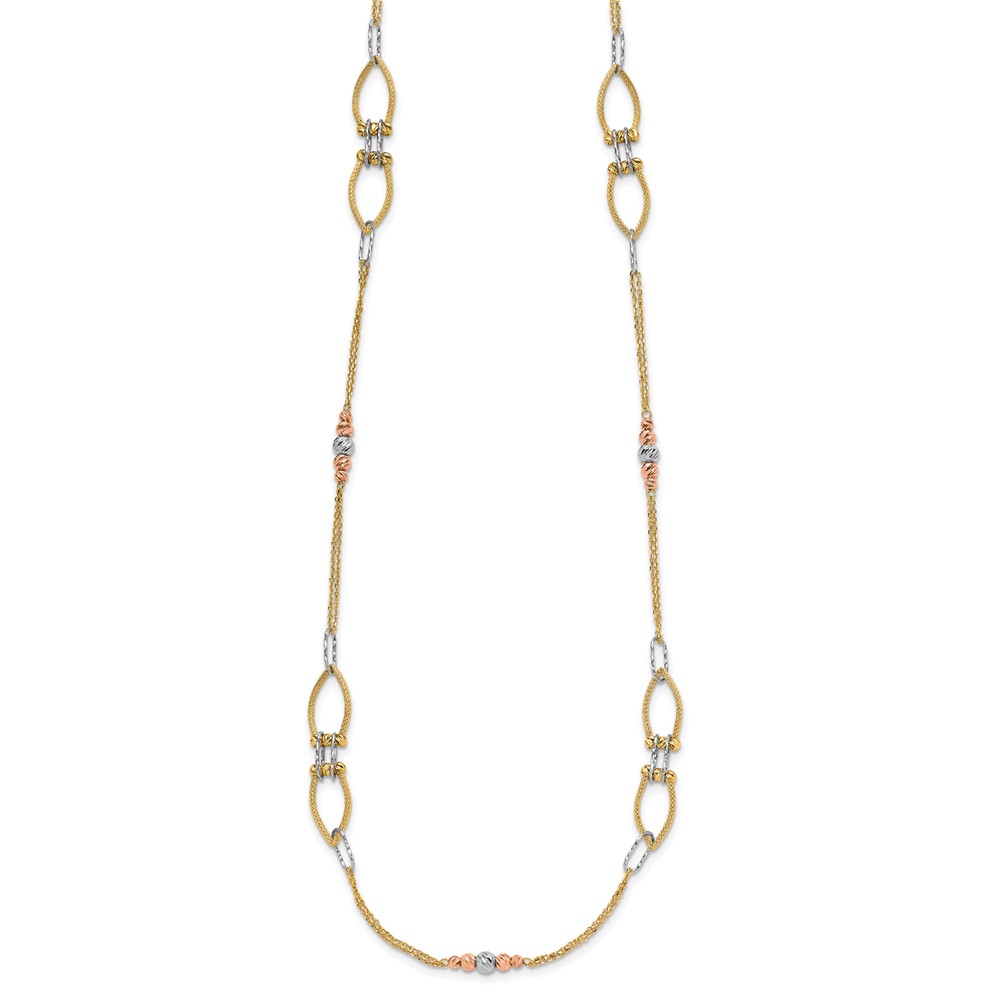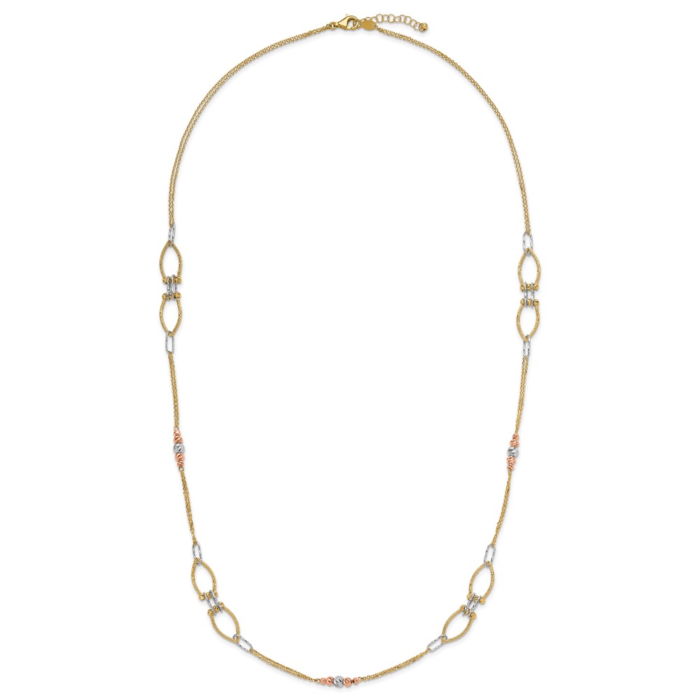 Leslie's 14K Tri-color Polish/Textured/Dia-cut Fancy w/1.5in ext. Necklace