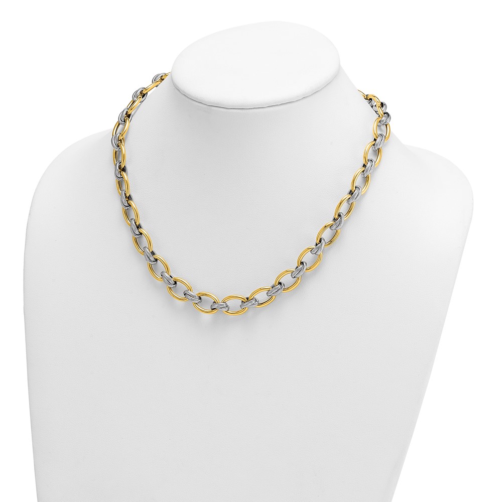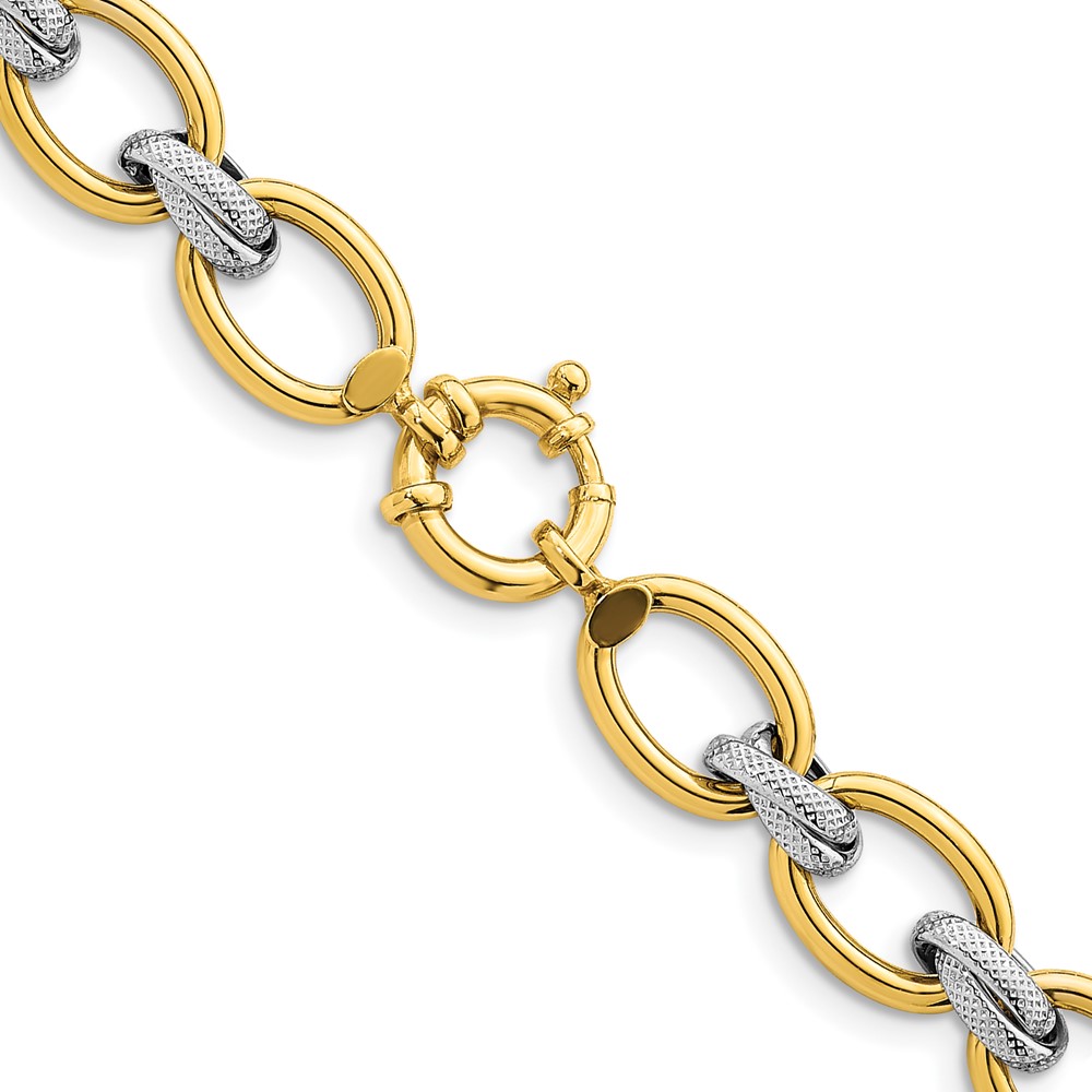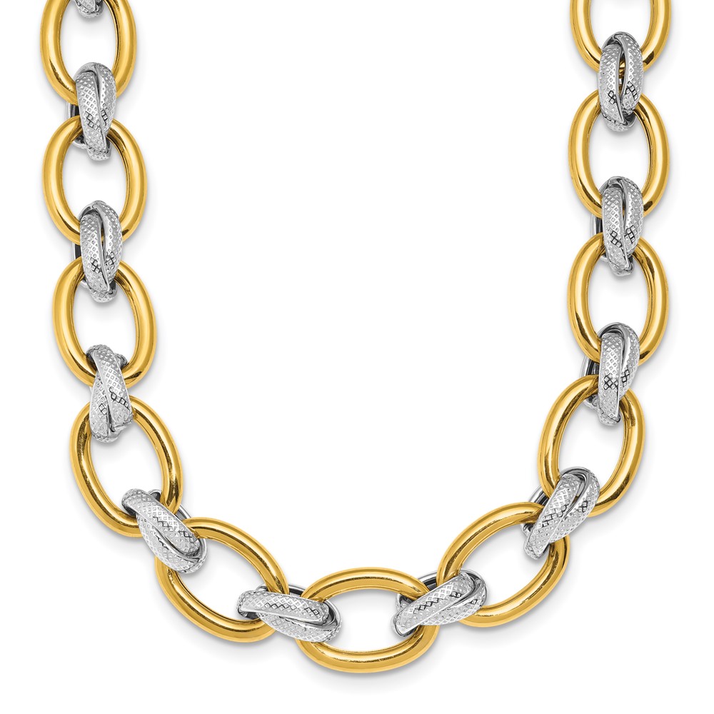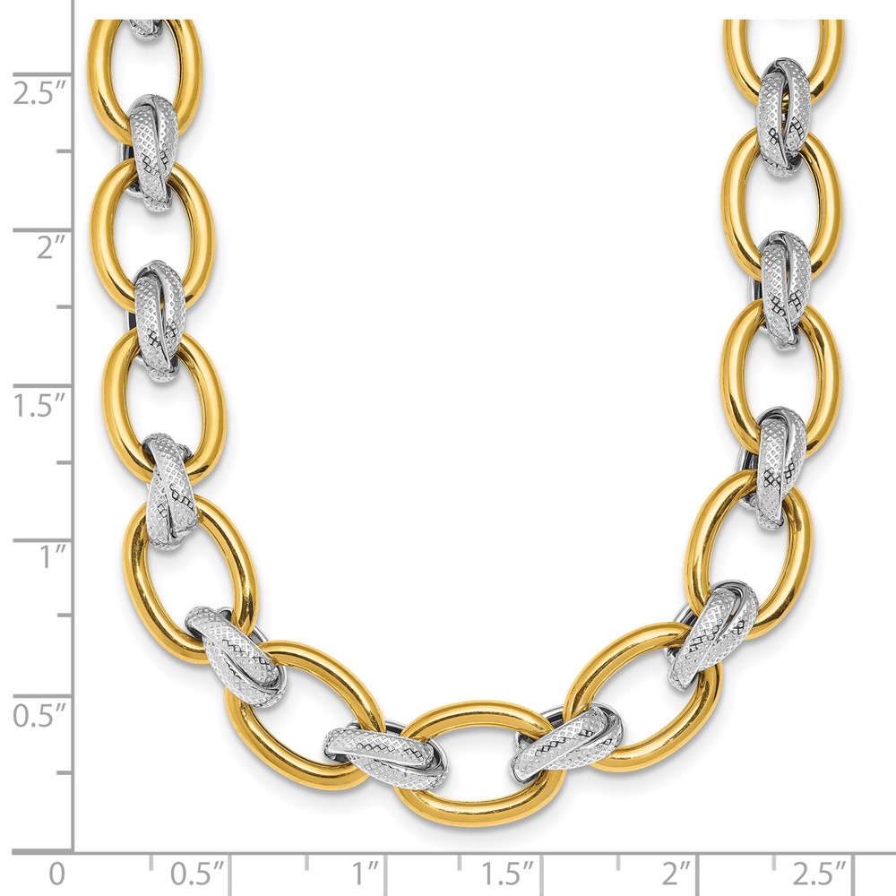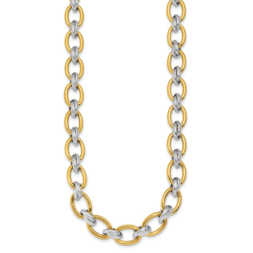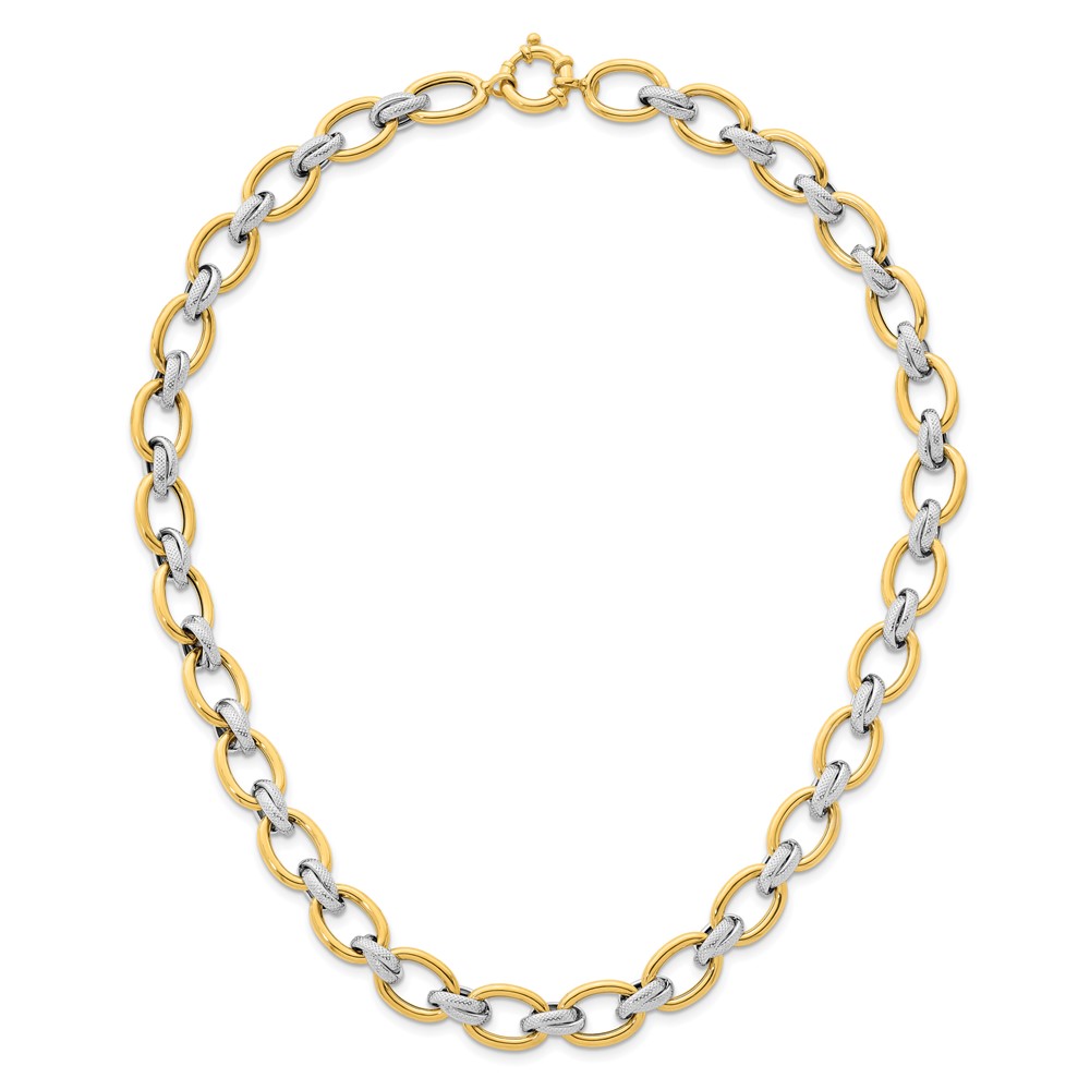 Herco 14K w/Rhodium Polished and Textured Fancy Oval Link Necklace