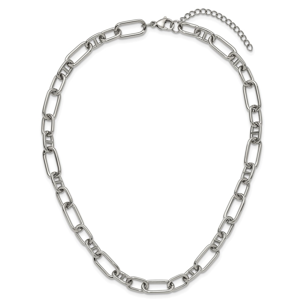 Chisel Stainless Steel Polished 9mm 16 inch Plus 2 inch Extension Open Link Necklace