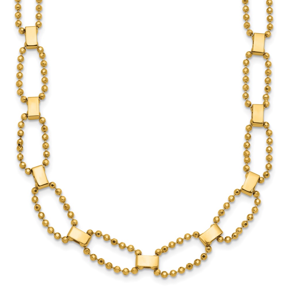 Leslie's 14K Polished / Dia-cut Fancy Beaded Link w/ 2in ext. Necklace