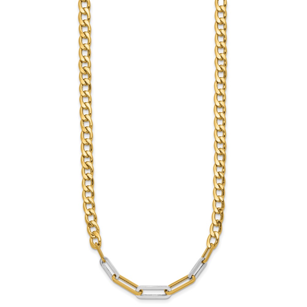 Leslie's 14K w/White RH Polished Curb and Paperclip Link Necklace