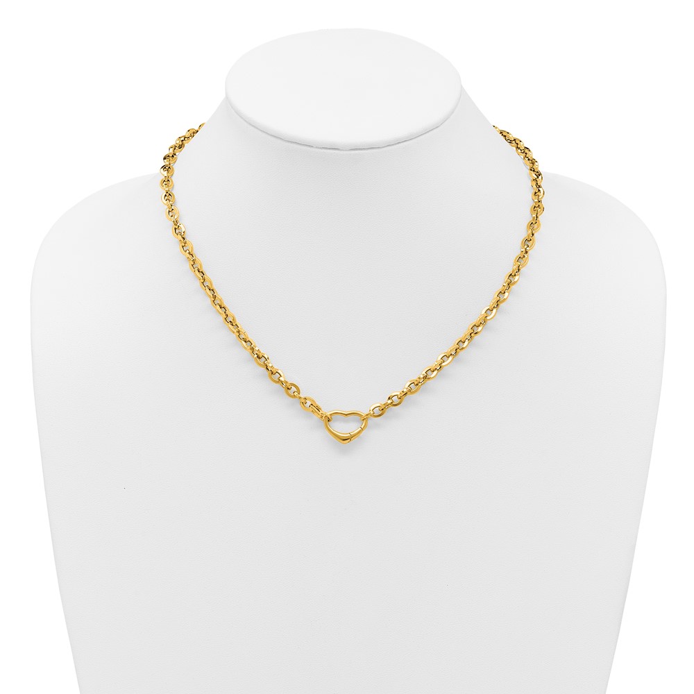 Herco 14K Polished Fancy Heart Clasp Cable Link 18 Inch Necklace