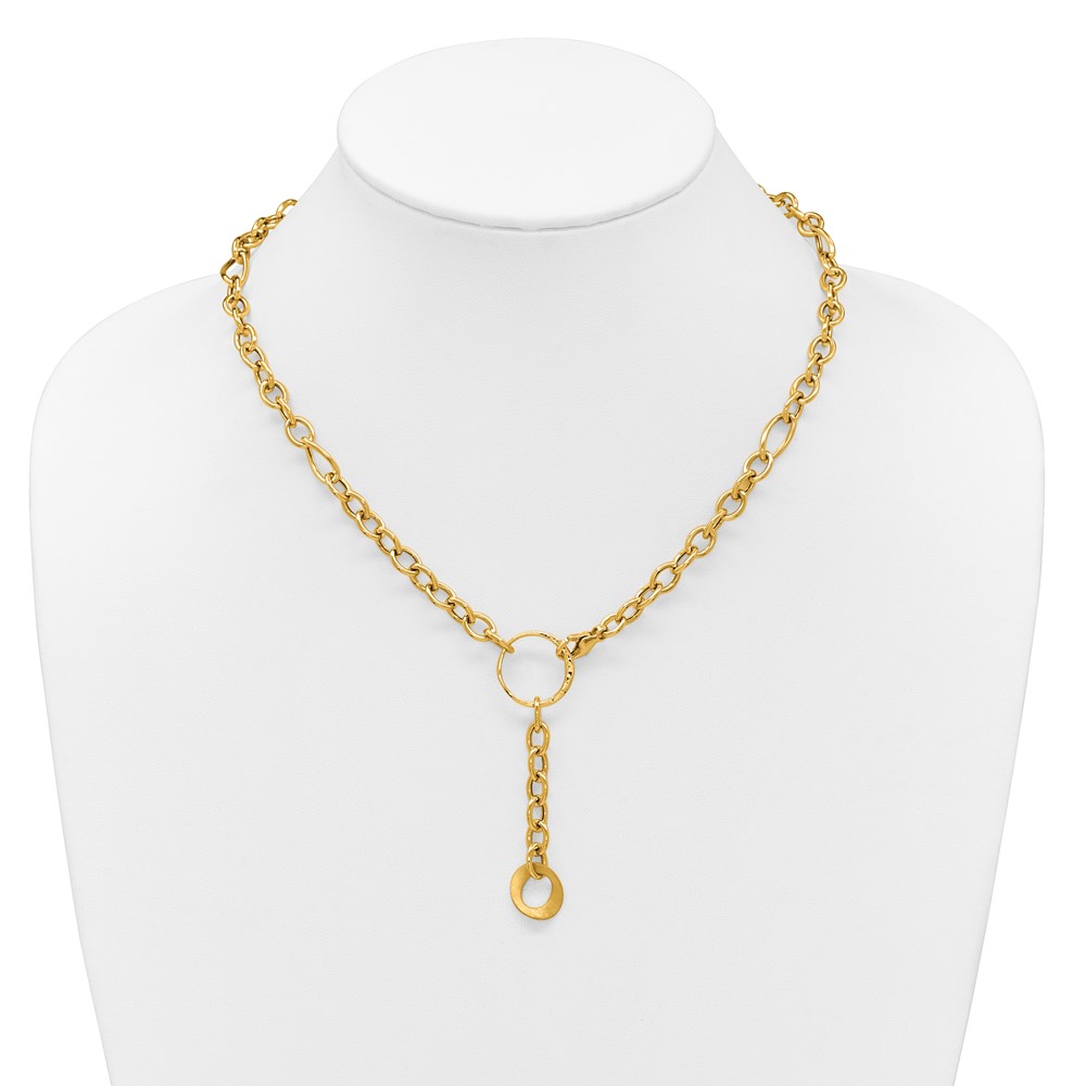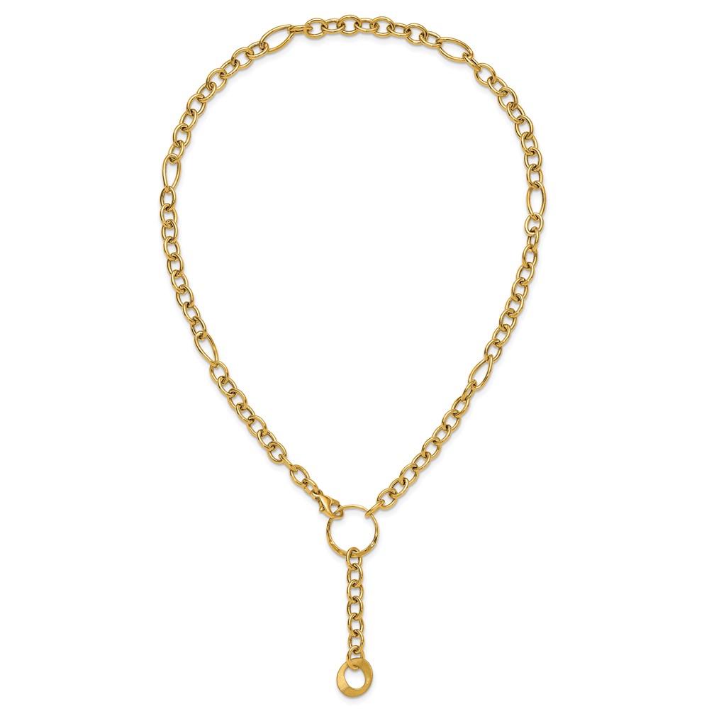 Herco 14K Polished and Brushed Mixed Link Lariat 17.5 Inch Necklace