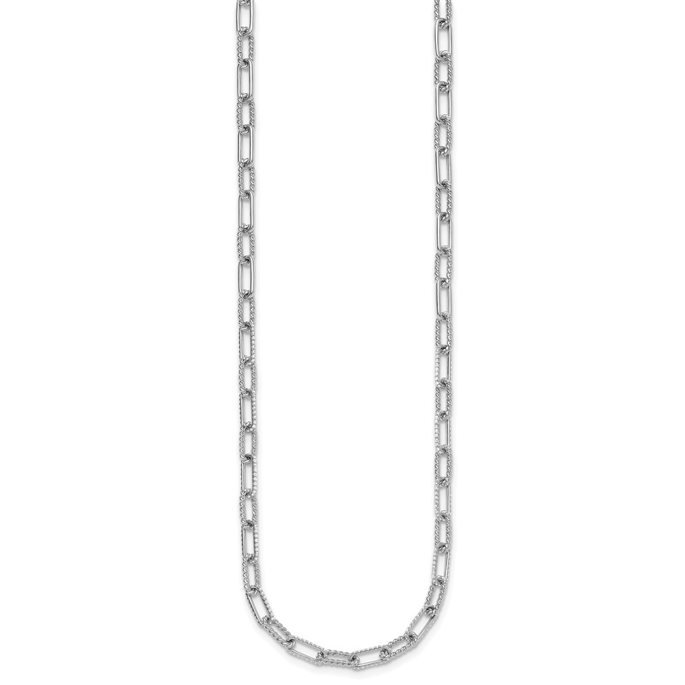 14K White Gold Polished and Twisted 1.44 carat Diamond Paperclip Link 18 inch Necklace