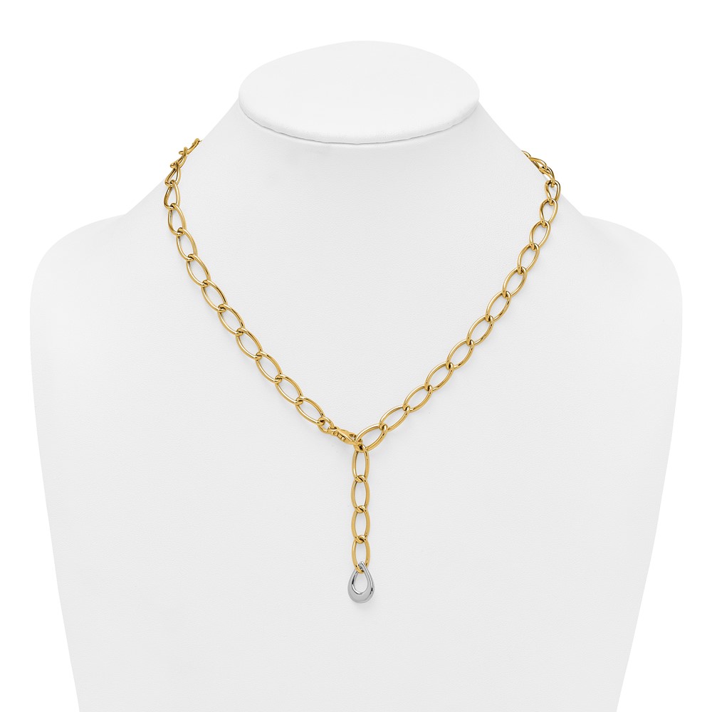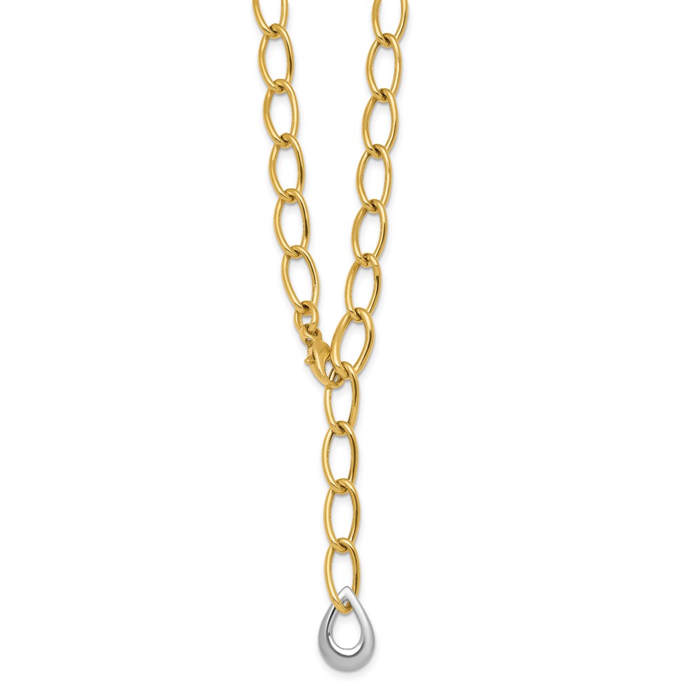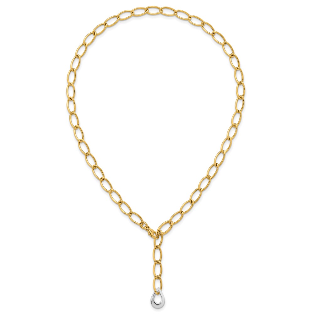 14k Two Tone Polished 6.5mm Fancy Curb Link With Teardrop 18 inch Lariat Necklace