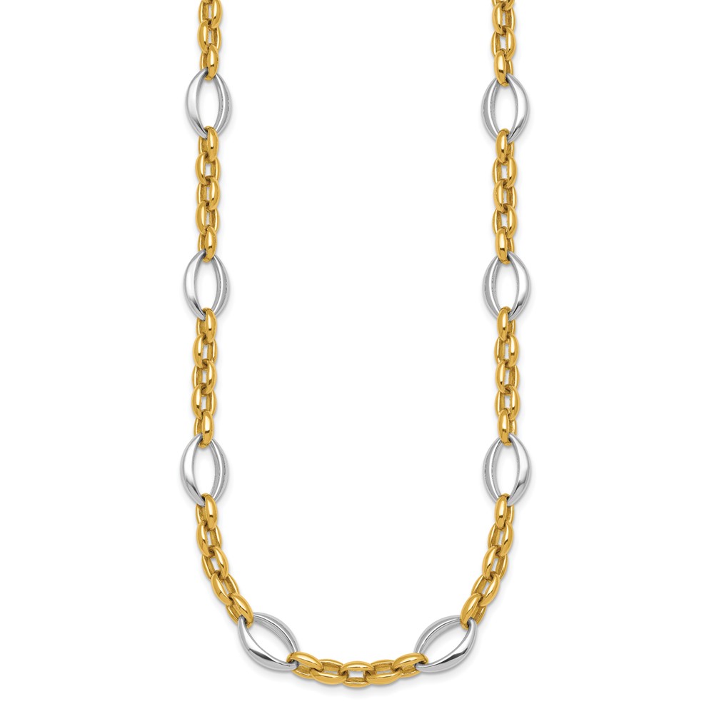 14k Two Tone Polished Oval and Cable Chain 18 inch Necklace