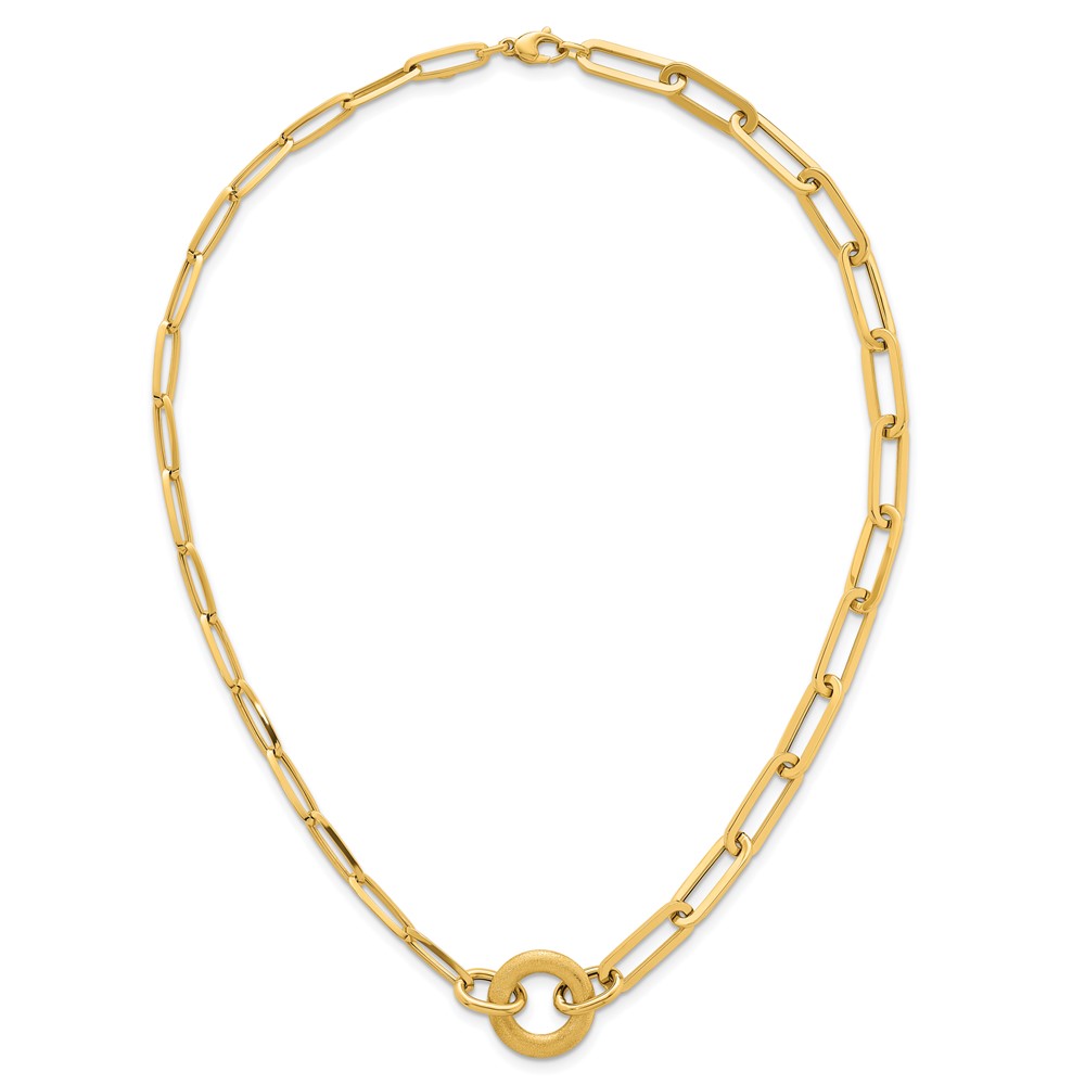 14k Polished And Brushed Paperclip Link With Circle 18 inch Necklace