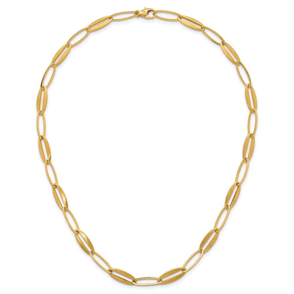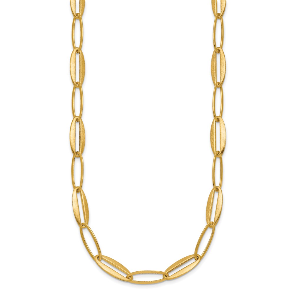 14k Brushed and Polished 7.25mm Long Oval Link 18 inch Necklace