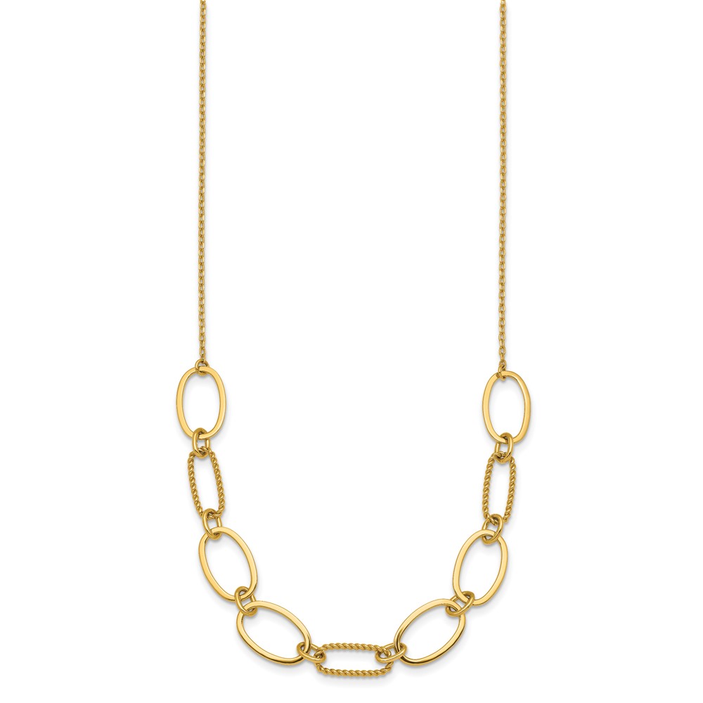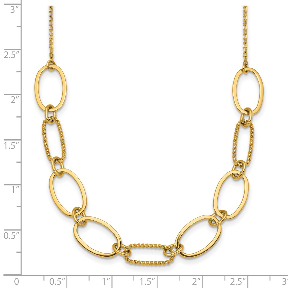 14k Polished And Twisted 9.5mm Oval Links 16 inch Necklace Plus 2 inch Extender