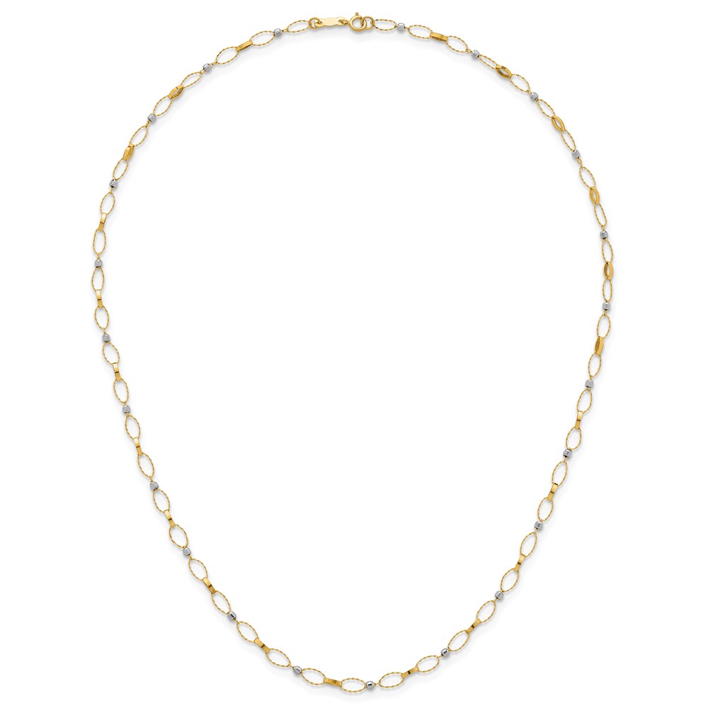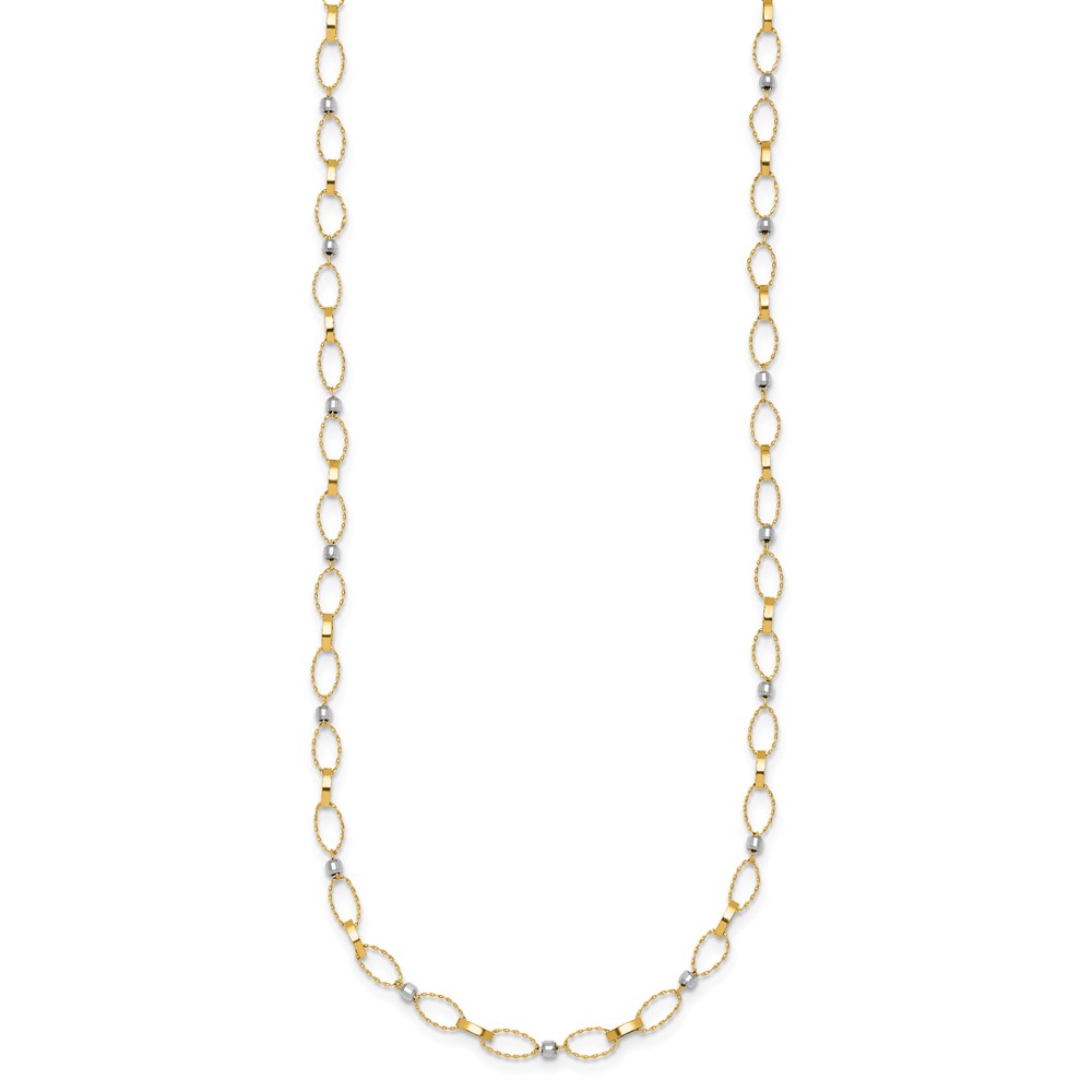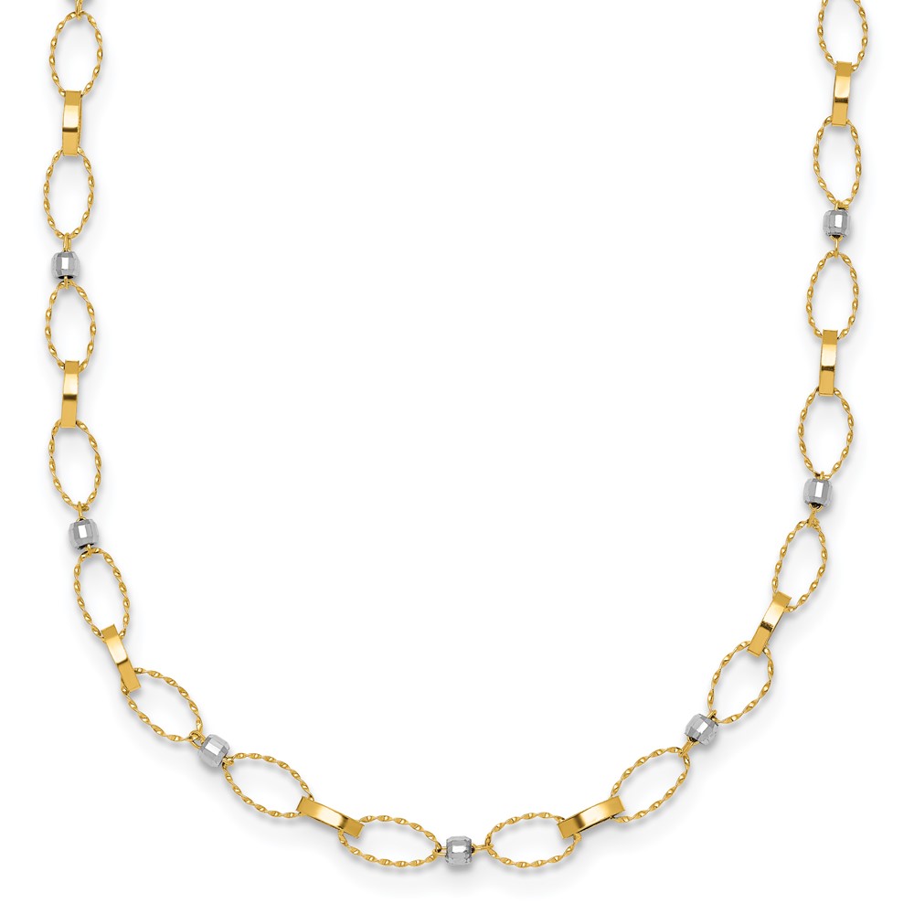 14k Two-tone Polished and Twisted Fancy Oval Links and Faceted Beads 18 inch Necklace