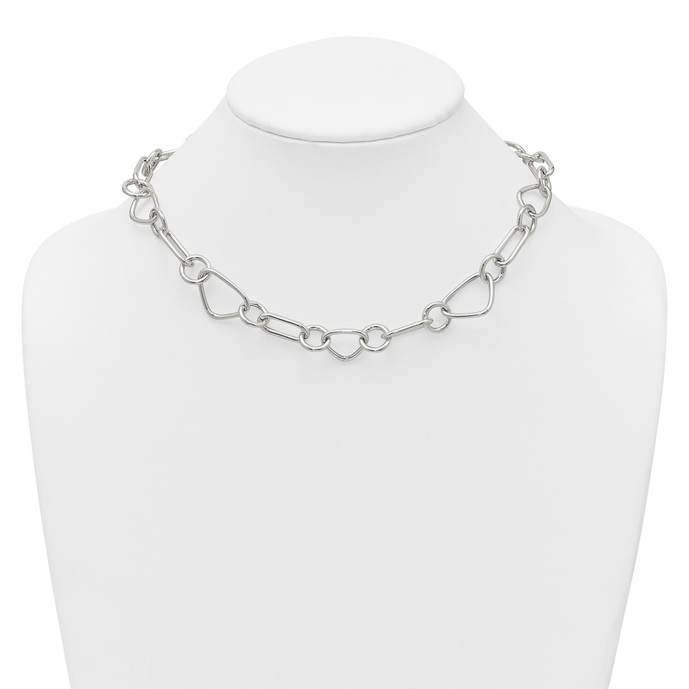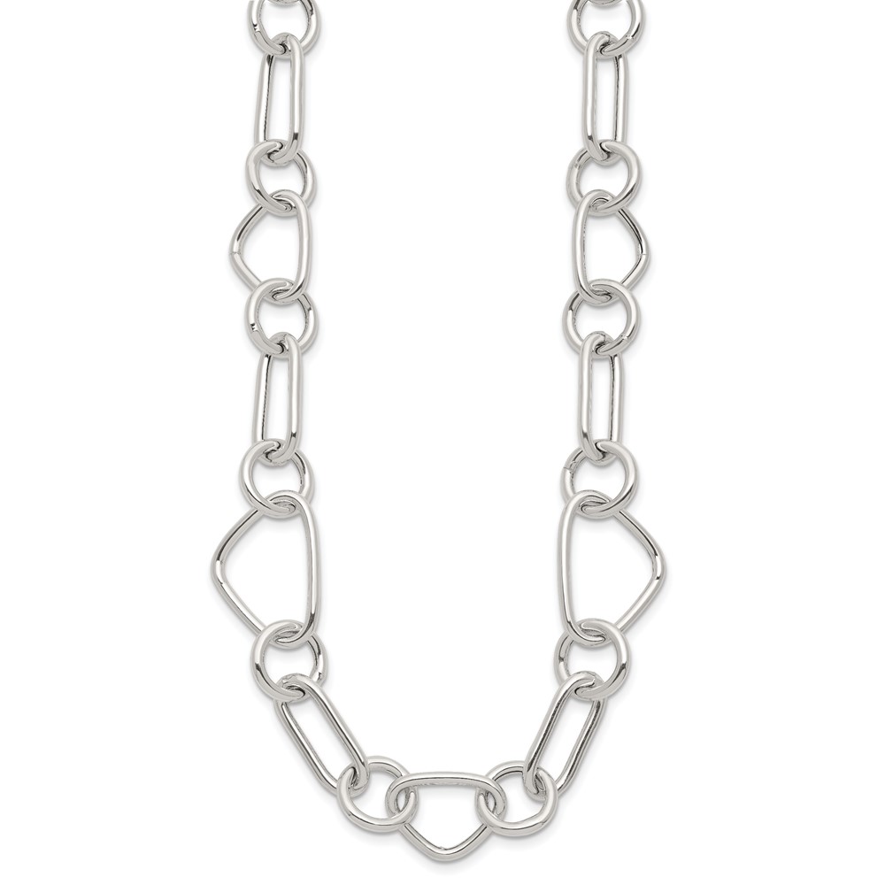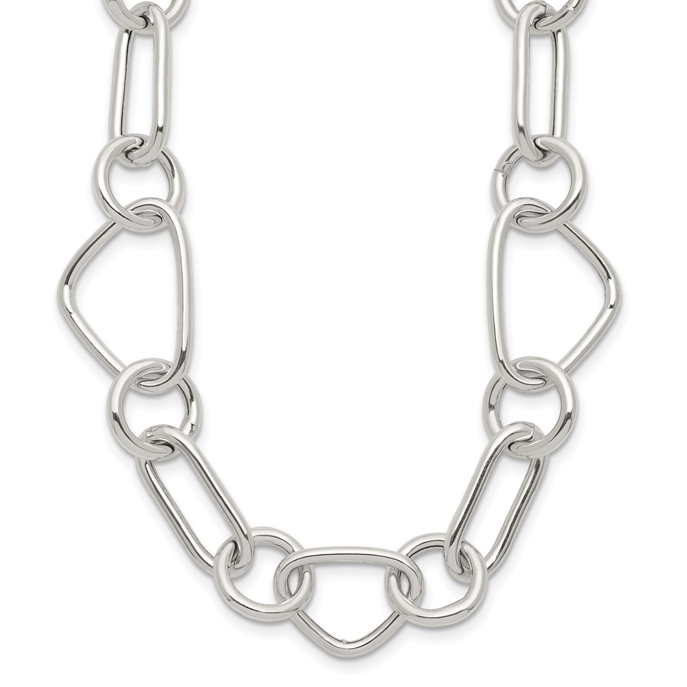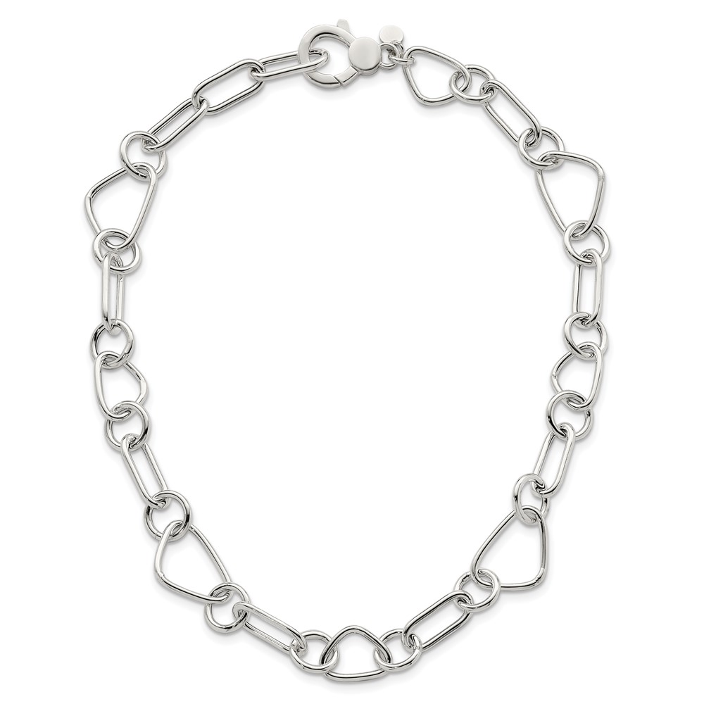 Sterling Silver Polished Triangle Round and Oval Link 17.5 inch Necklace