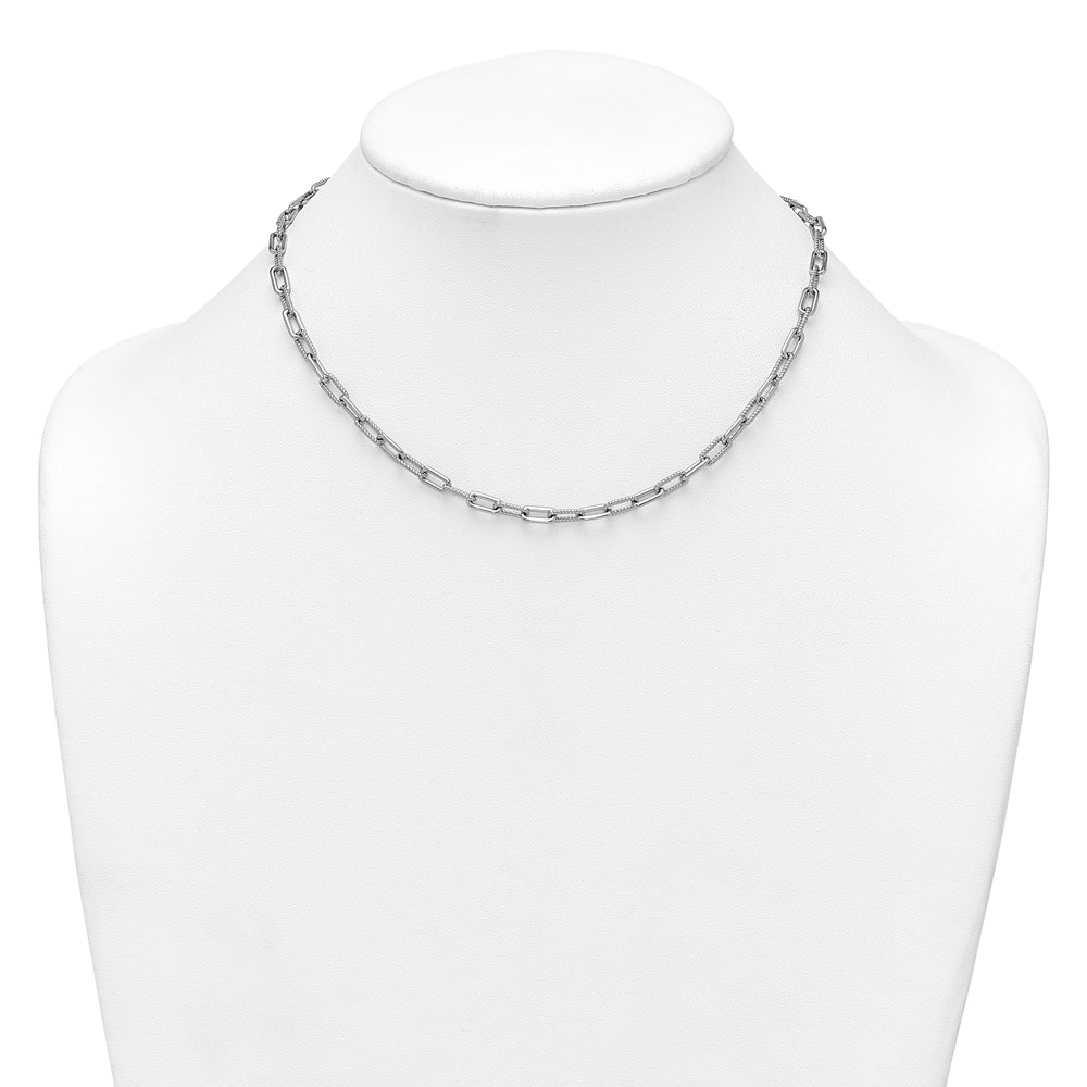 Sterling Silver Rhodium-plated Polished and Twisted Paperclip Link 16 Inch with 2 Inch Extension Necklace