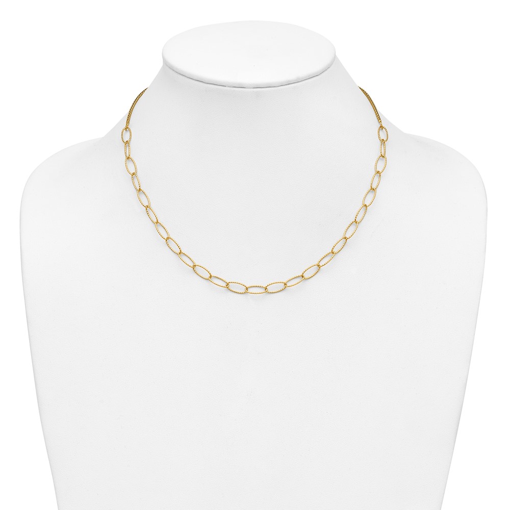 Leslie's 14K Polished and Dia-cut Fancy Oval Link Necklace