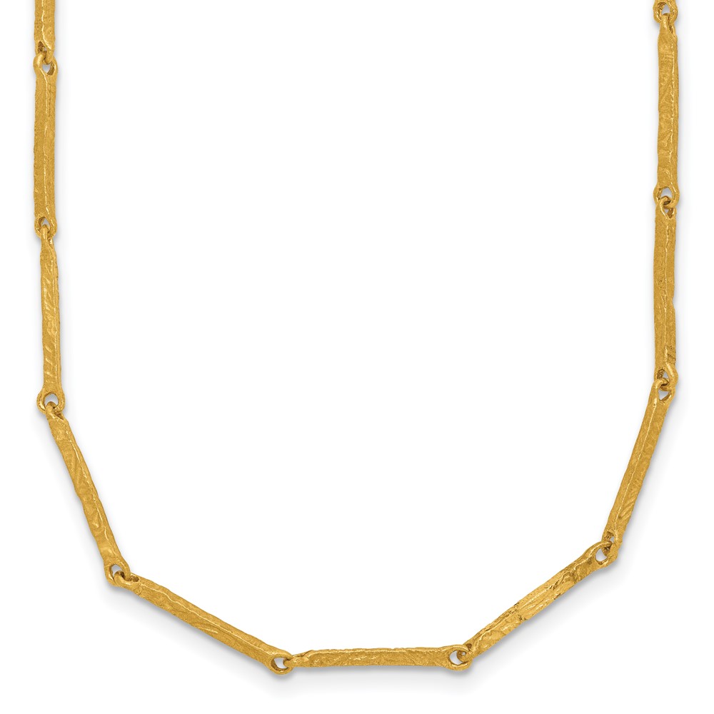 Herco 18K Handmade Solid Textured Bar Link 14 Inch with 2 Inch and 2 Inch Extension Necklace