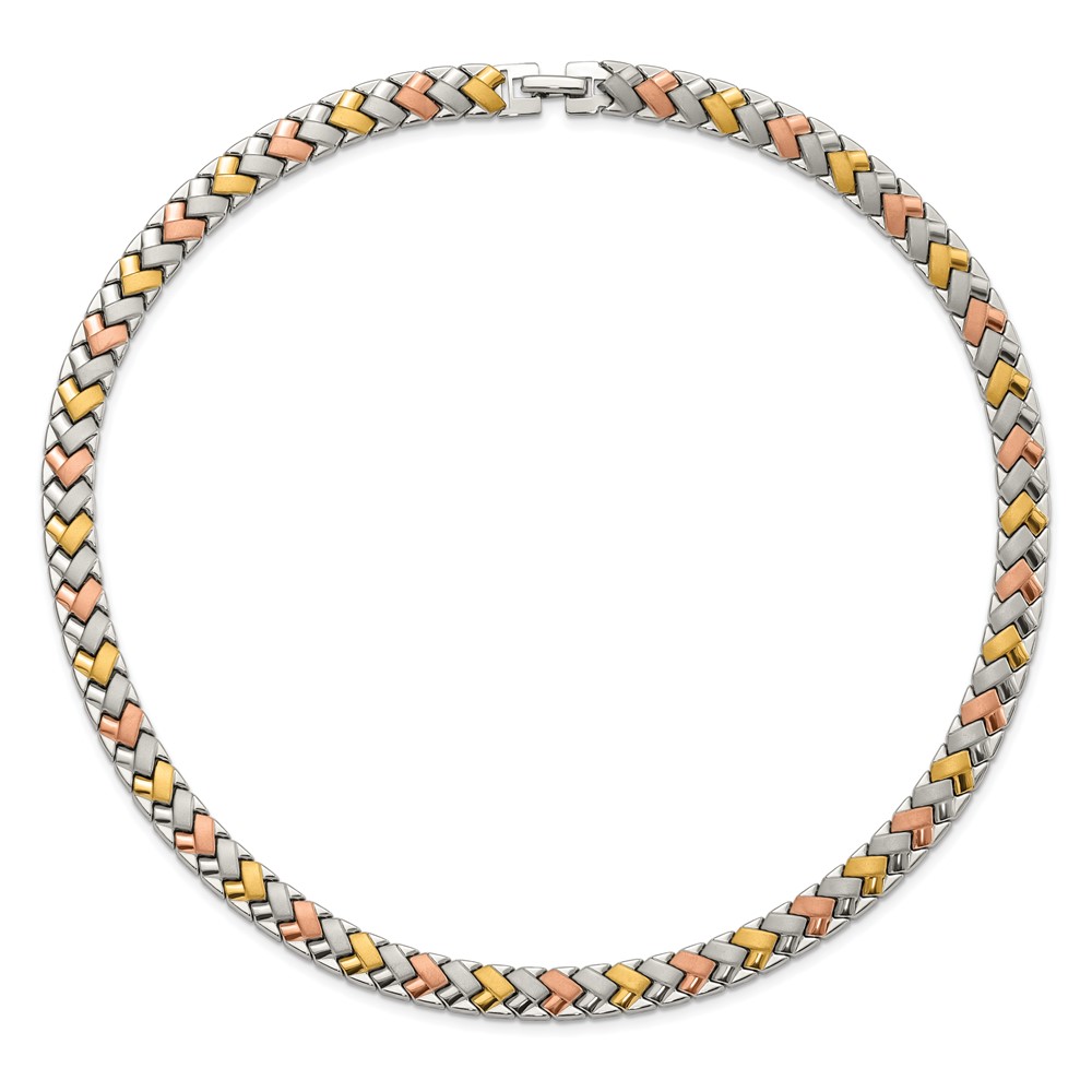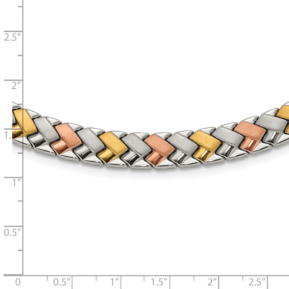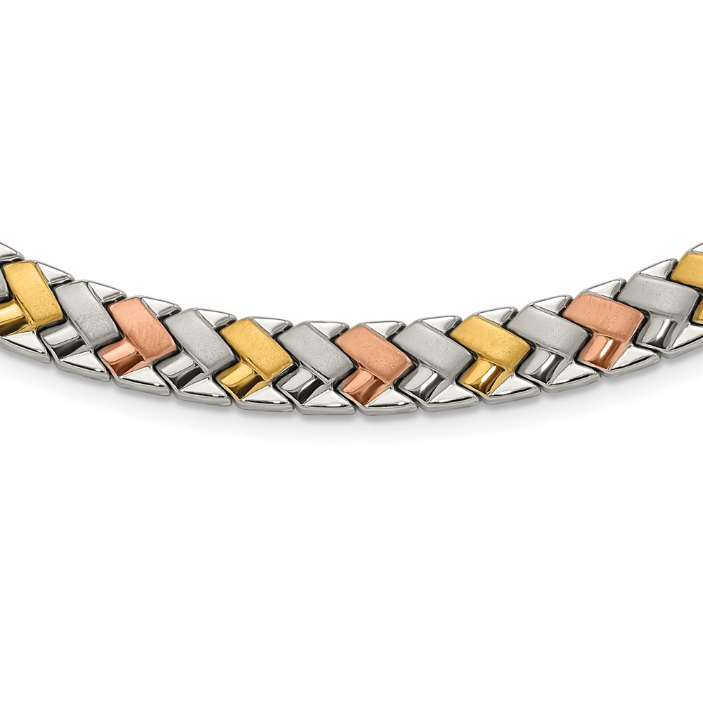 Stainless Steel Rose & Yellow IP-plated Polished & Satin Link Necklace