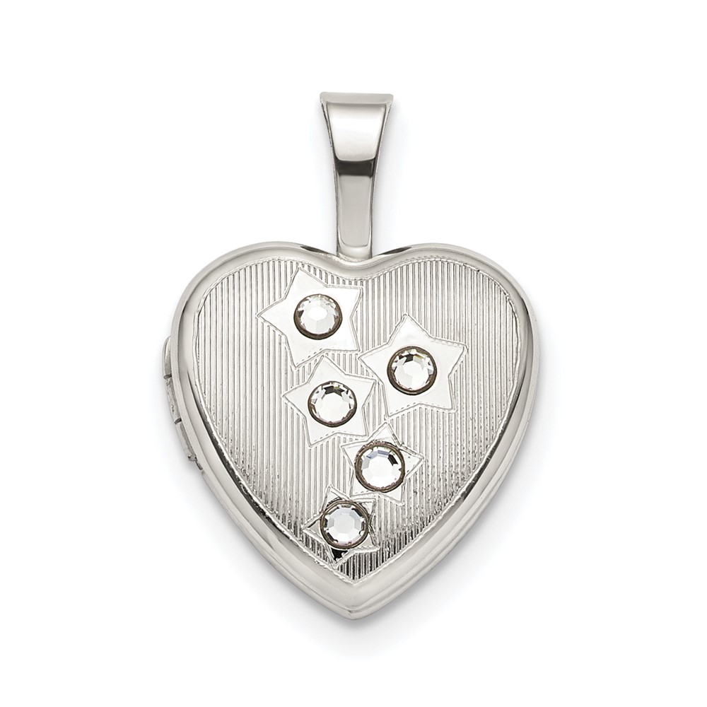 Sterling Silver 12mm Stars CZ Heart Locket