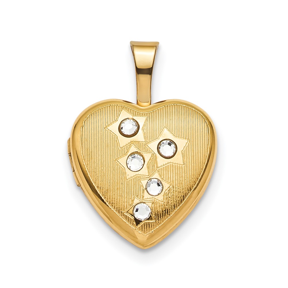 Sterling Silver Gold-plated 12mm Star CZ Heart Locket