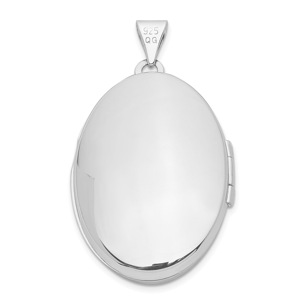 Sterling Silver Rhodium-plated 26mm Scroll Oval Locket
