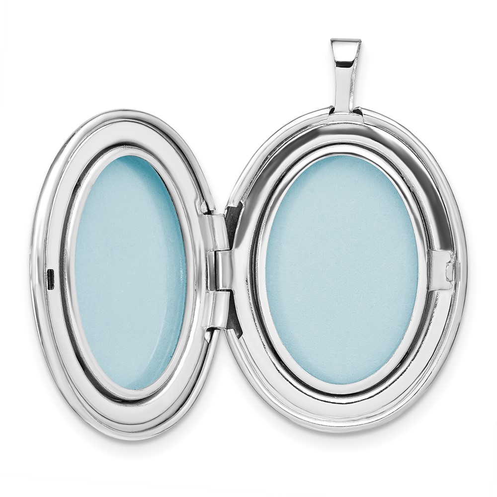 Sterling Silver Rhodium-plated Heart Border 26x20mm Oval Locket