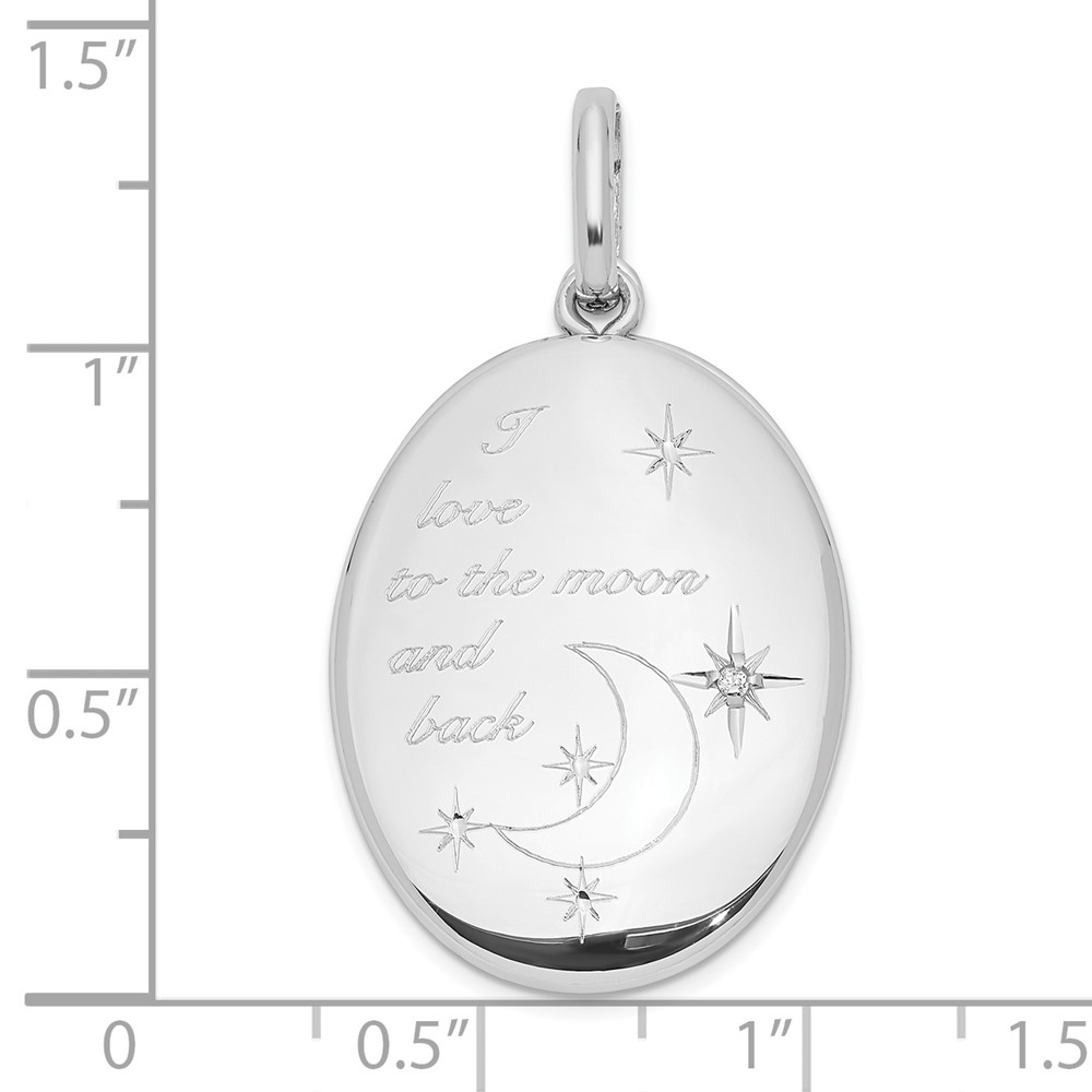 Sterling Silver Rhod-pltd 26mm Diamond I LOVE MOON Oval Swing Locket