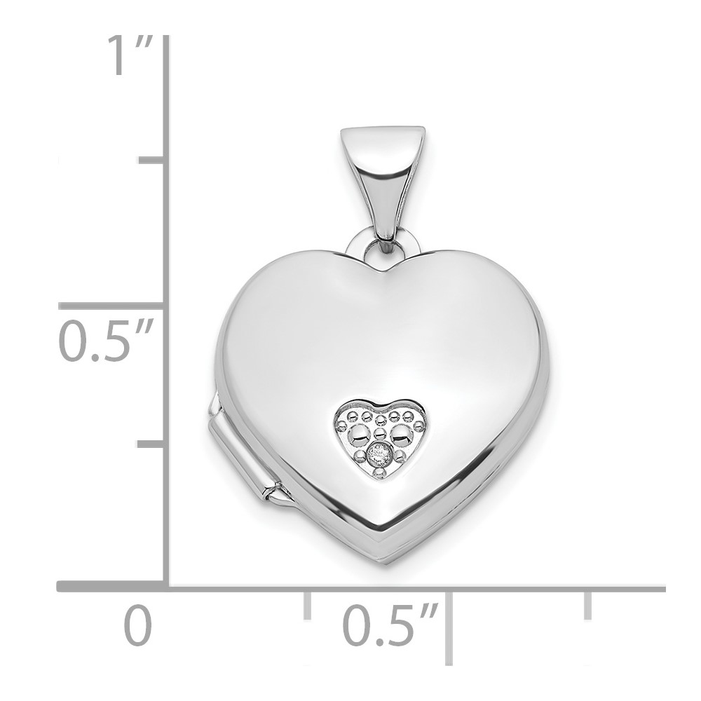 Sterling Silver Rhodium-plated CZ 15mm Heart Locket