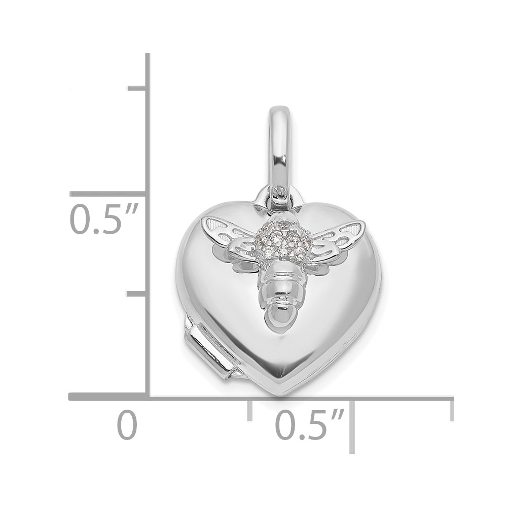 14k White Gold Polished CZ Bee Heart 12mm Locket
