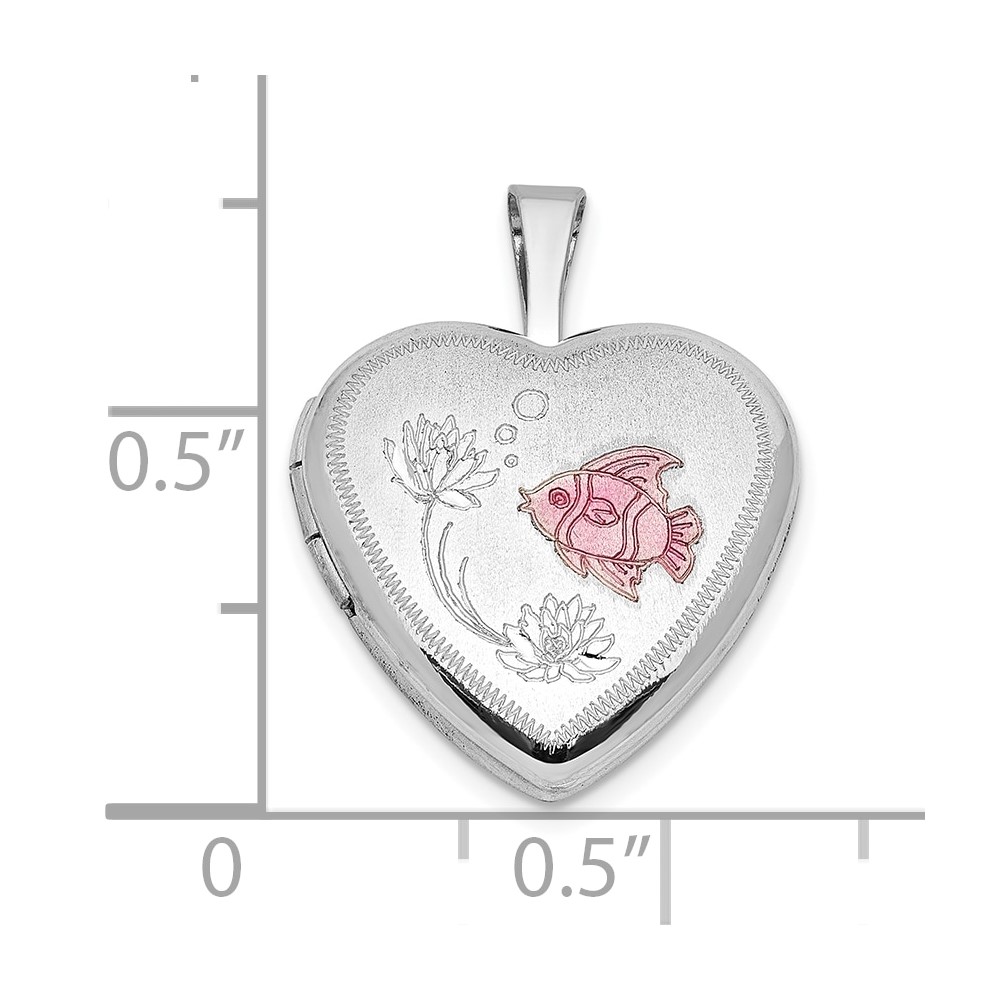 Sterling Silver Rhodium-plated Epoxy Satin Polished Fish 16mm Heart Locket