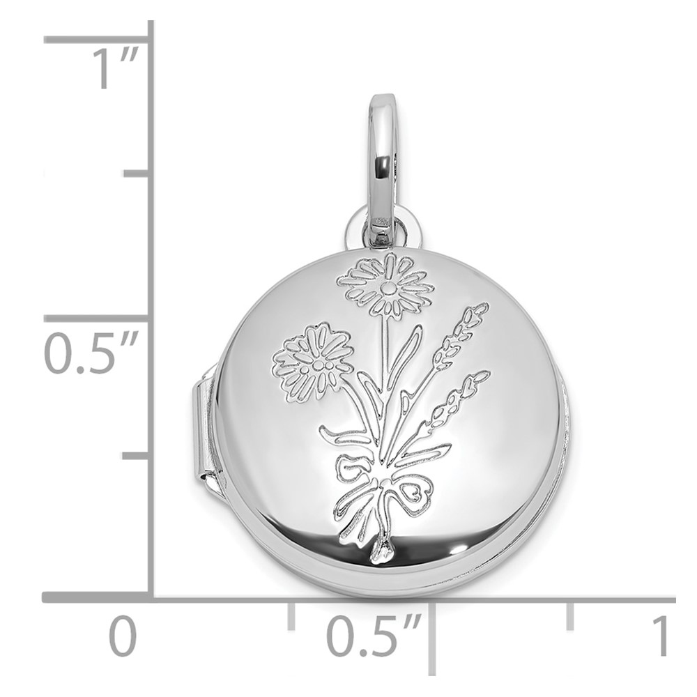 SS Rhodium-plated Floral 16mm Granddaughter Reversible Round Locket