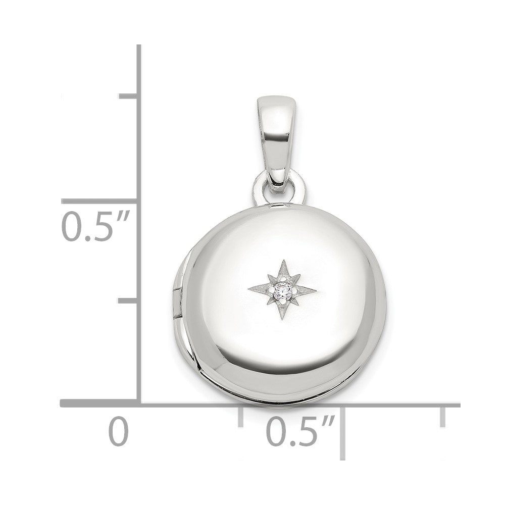 Sterling Silver E-coated CZ 14mm Round Locket