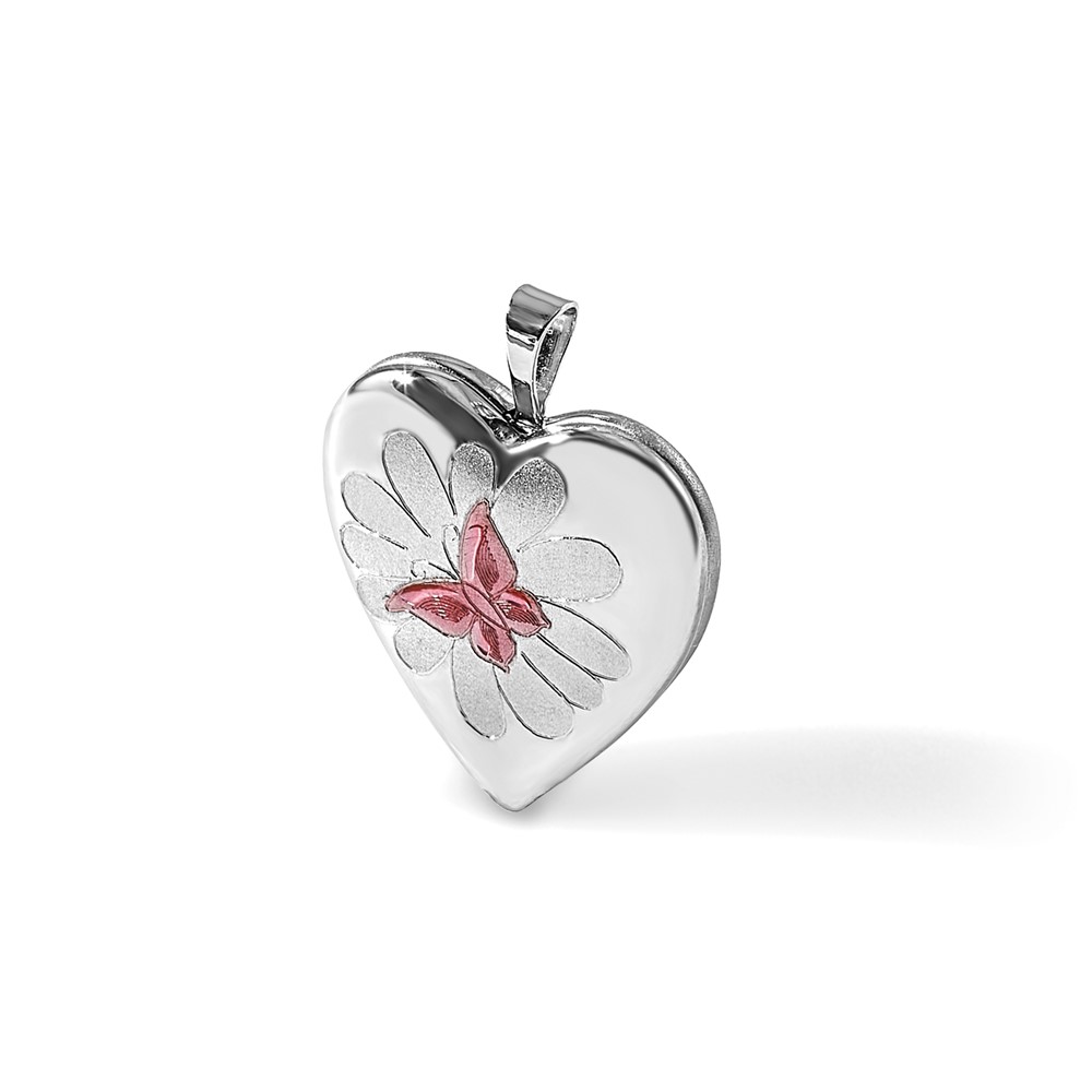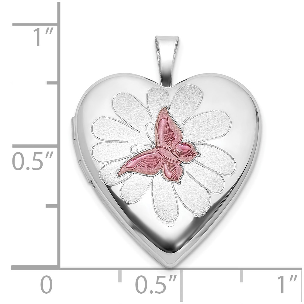 Sterling Silver RH-plate Polished/Satin Epoxy 20mm Butterfly Heart Locket