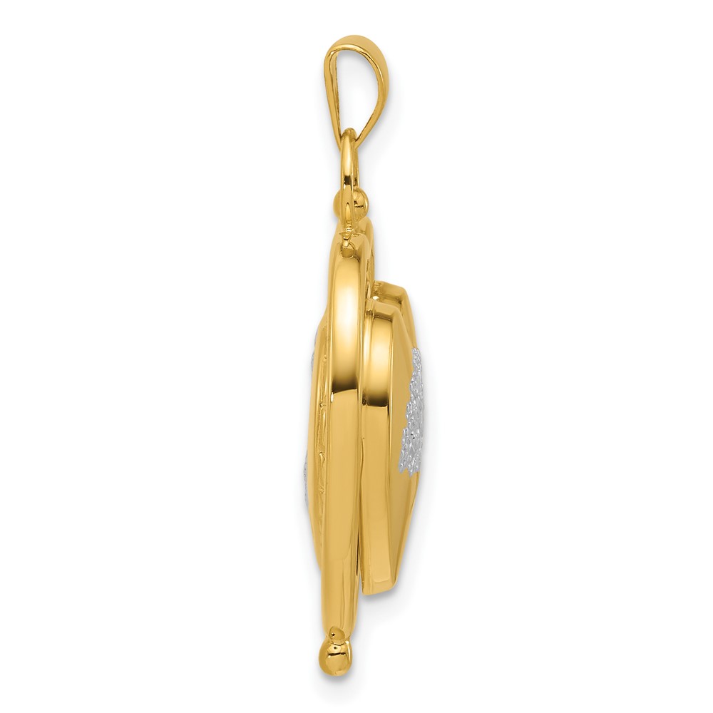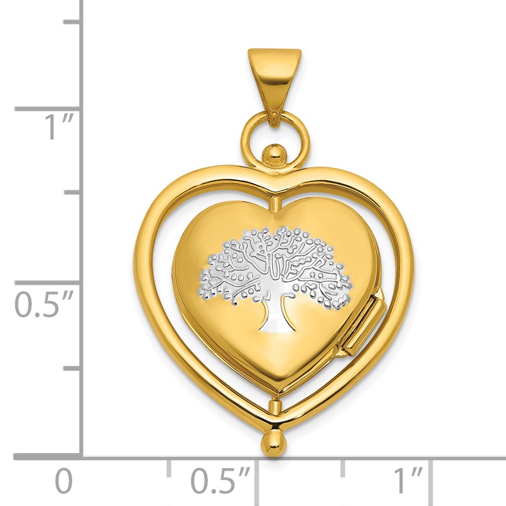 14k and White Rhodium Tree of Life and Flowers in Spinning Frame Reversible 15mm Heart Locket